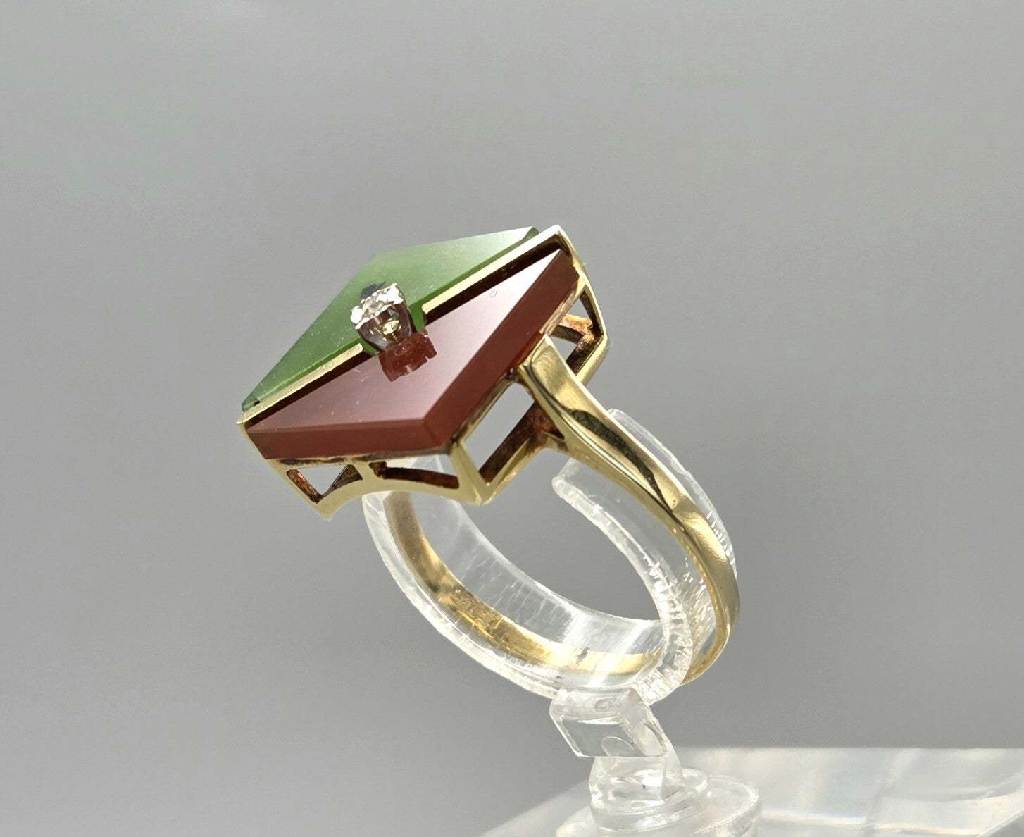 Vintage ring met edelsteen carneool en aventurijn en diamant. 2026/193.