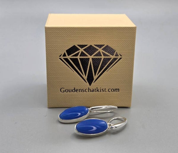 Zilveren oorbellen met edelsteen blauwe agaat. Een prachtige set met schitterende edelstenen agaat. Deze leuke oorbellen zijn vervaardigd uit het eerste gehalte zilver (925/1000).