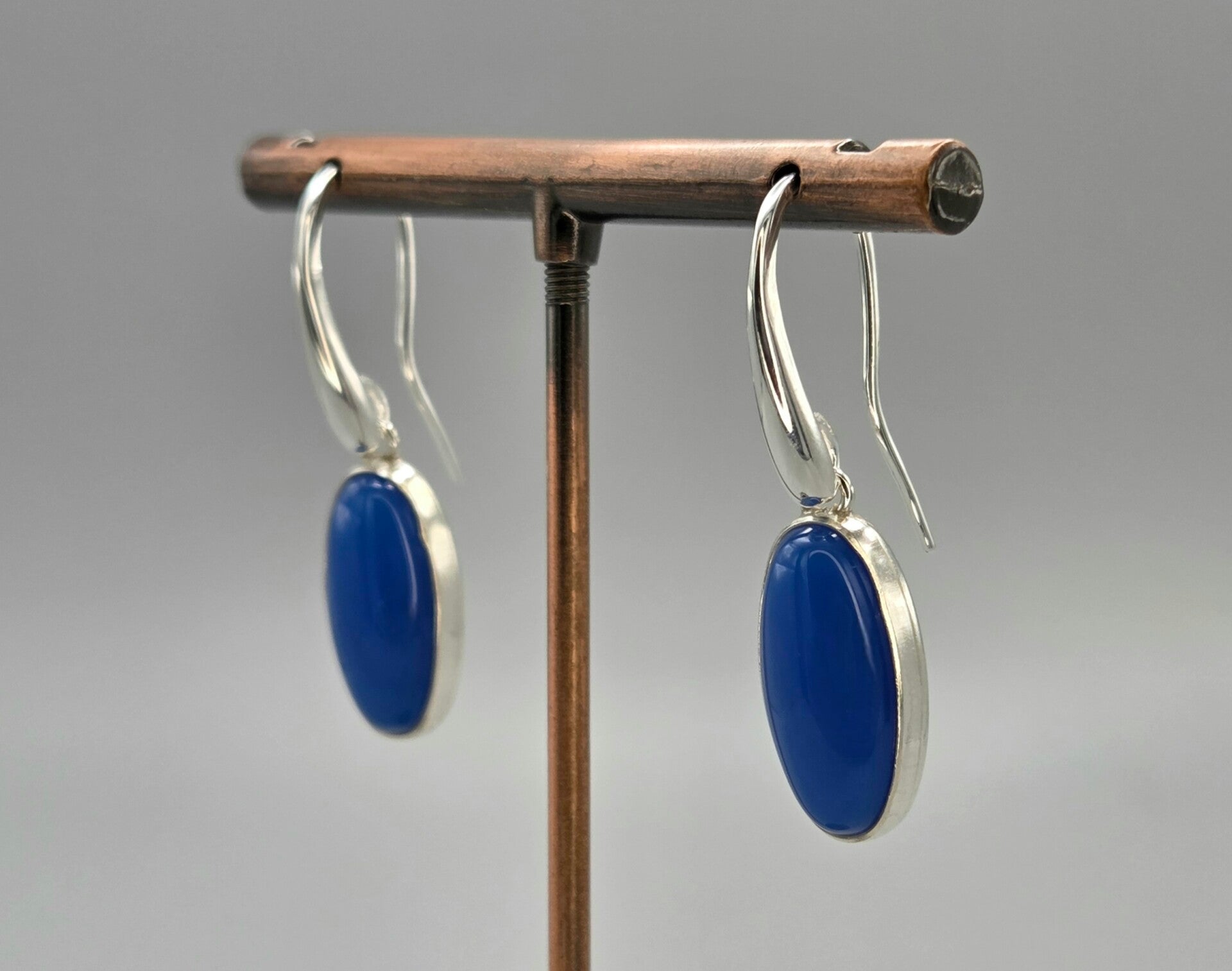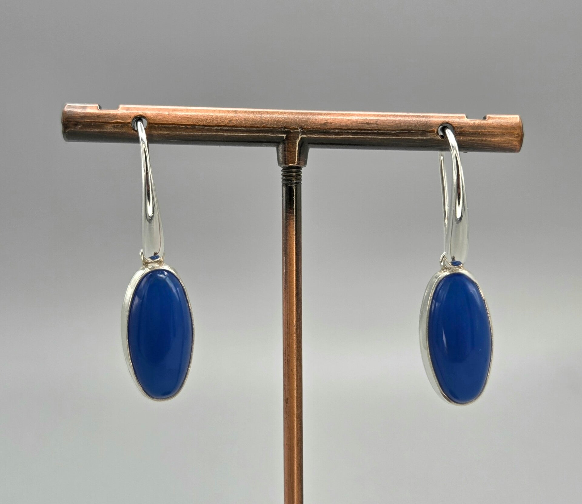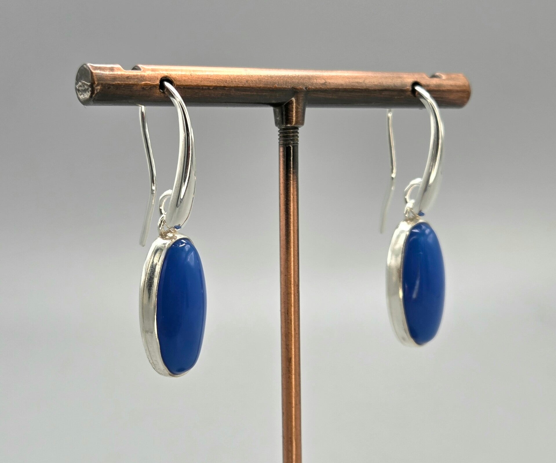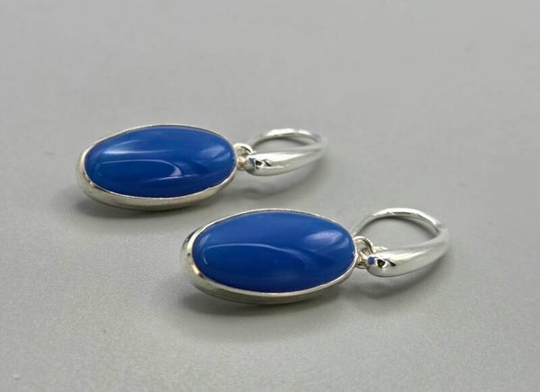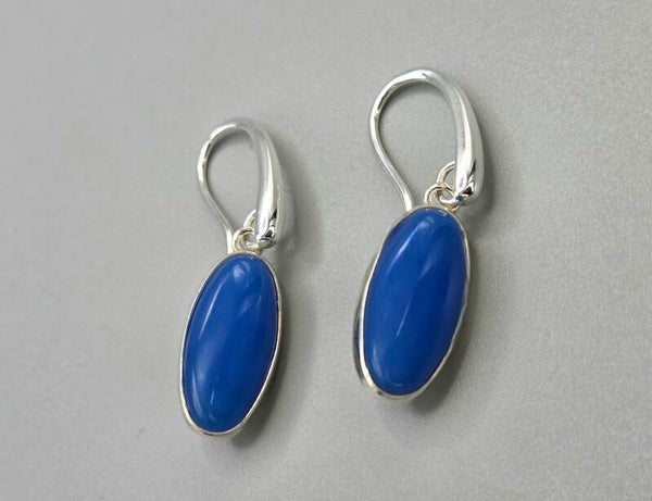 Zilveren oorbellen met edelsteen blauwe agaat. 2026/249.
