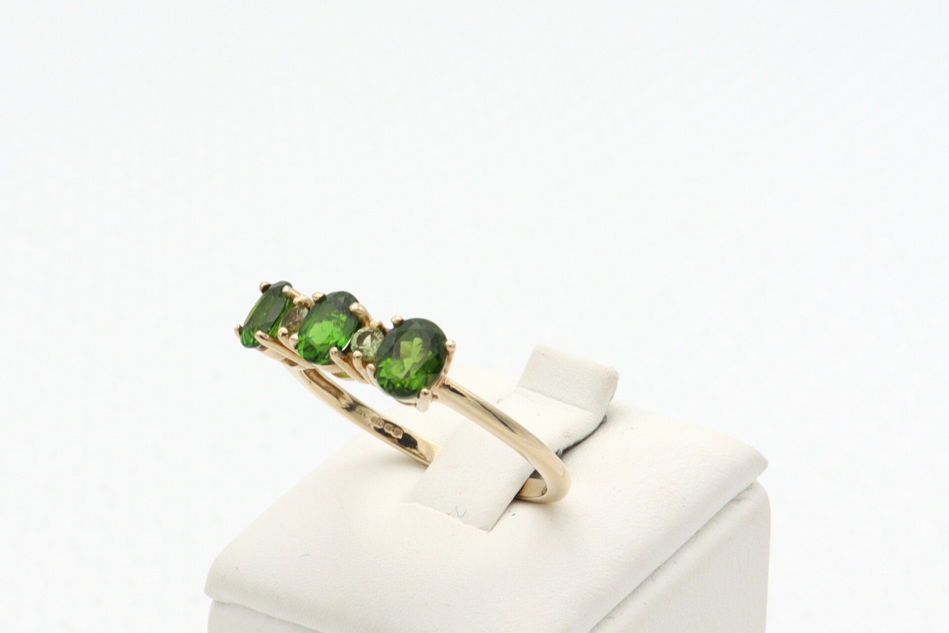 9 Karaat. Vintage ring met smaragd en peridot. Maat:17.8. Nr: 2020/723.