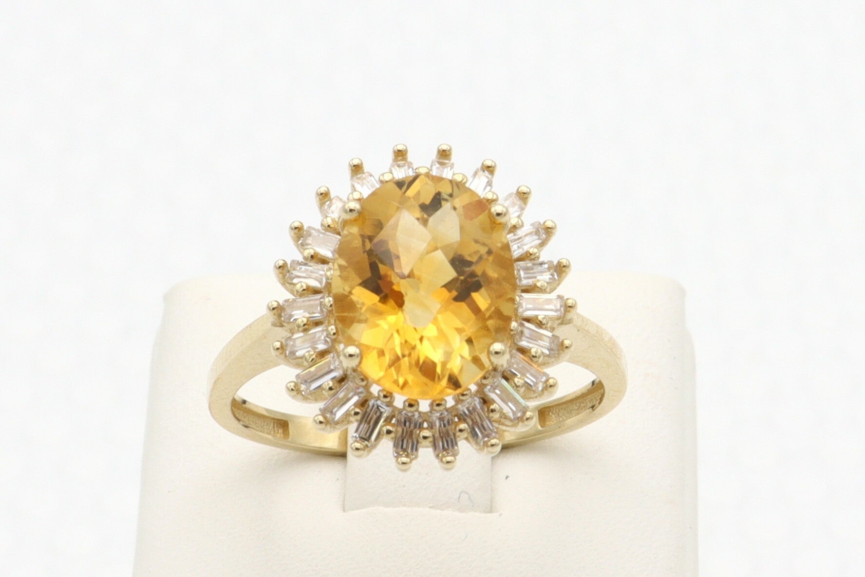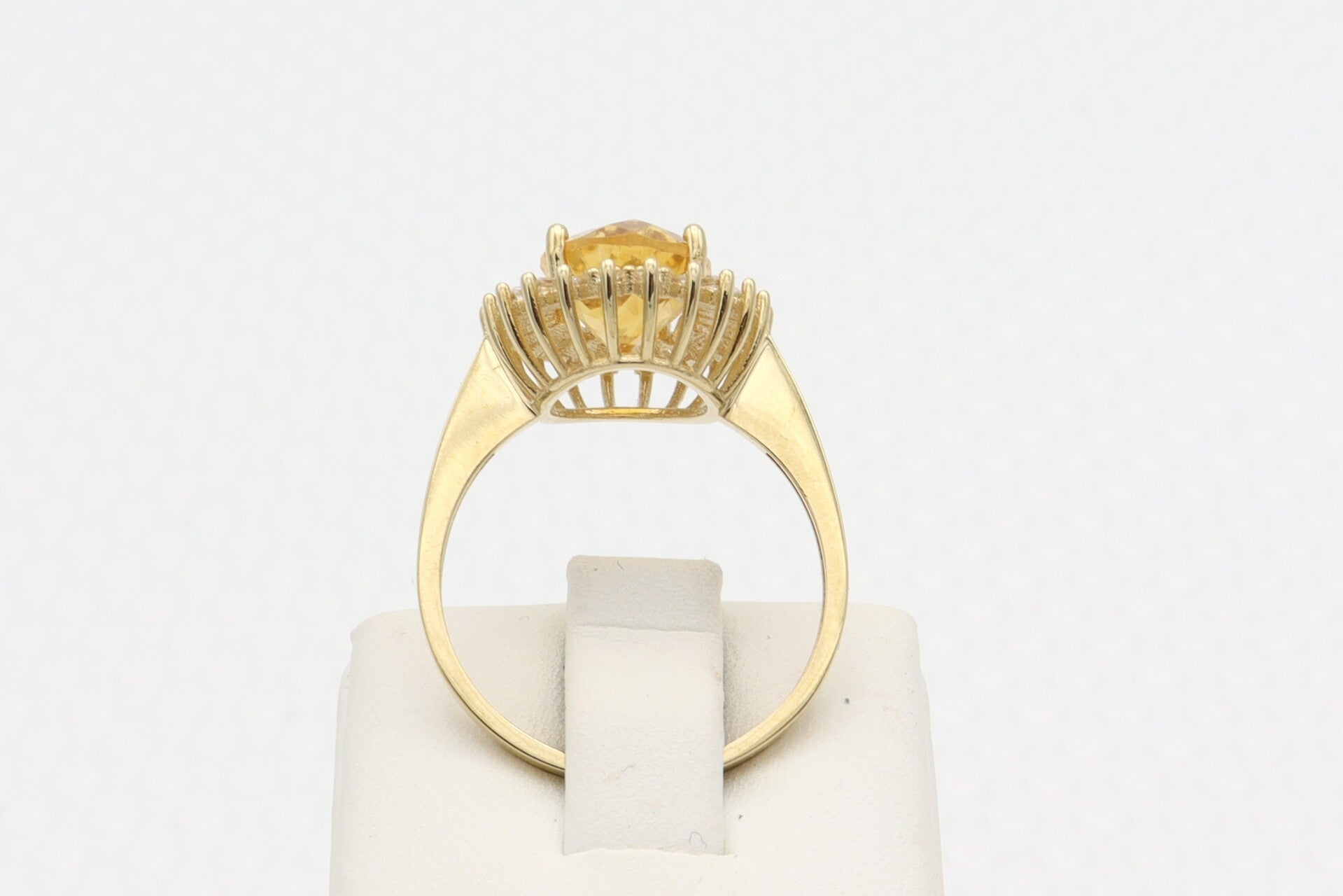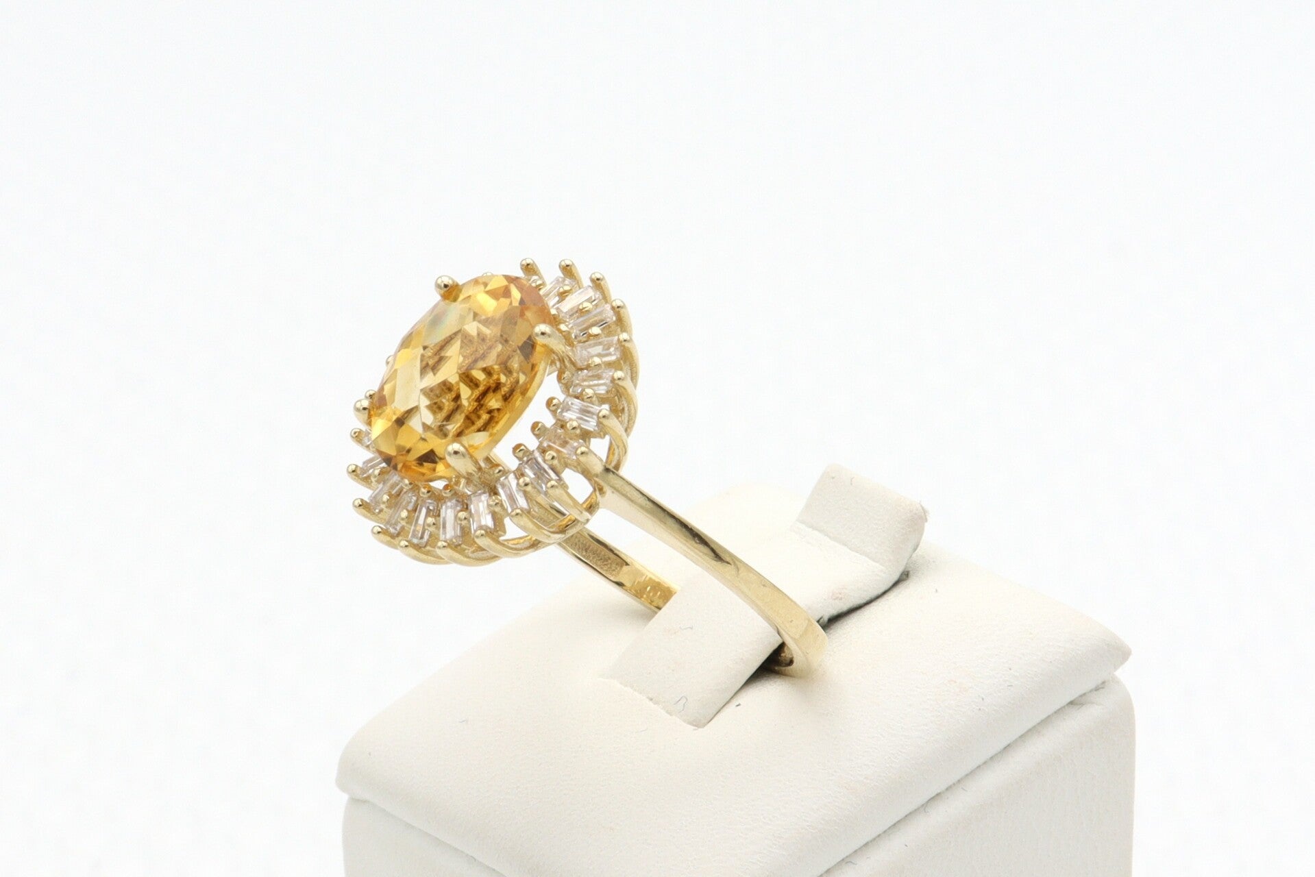 14 Karaat. Gouden vintage ring met citrien en diamonds.Maat:17.1. Nr: 2020/724.