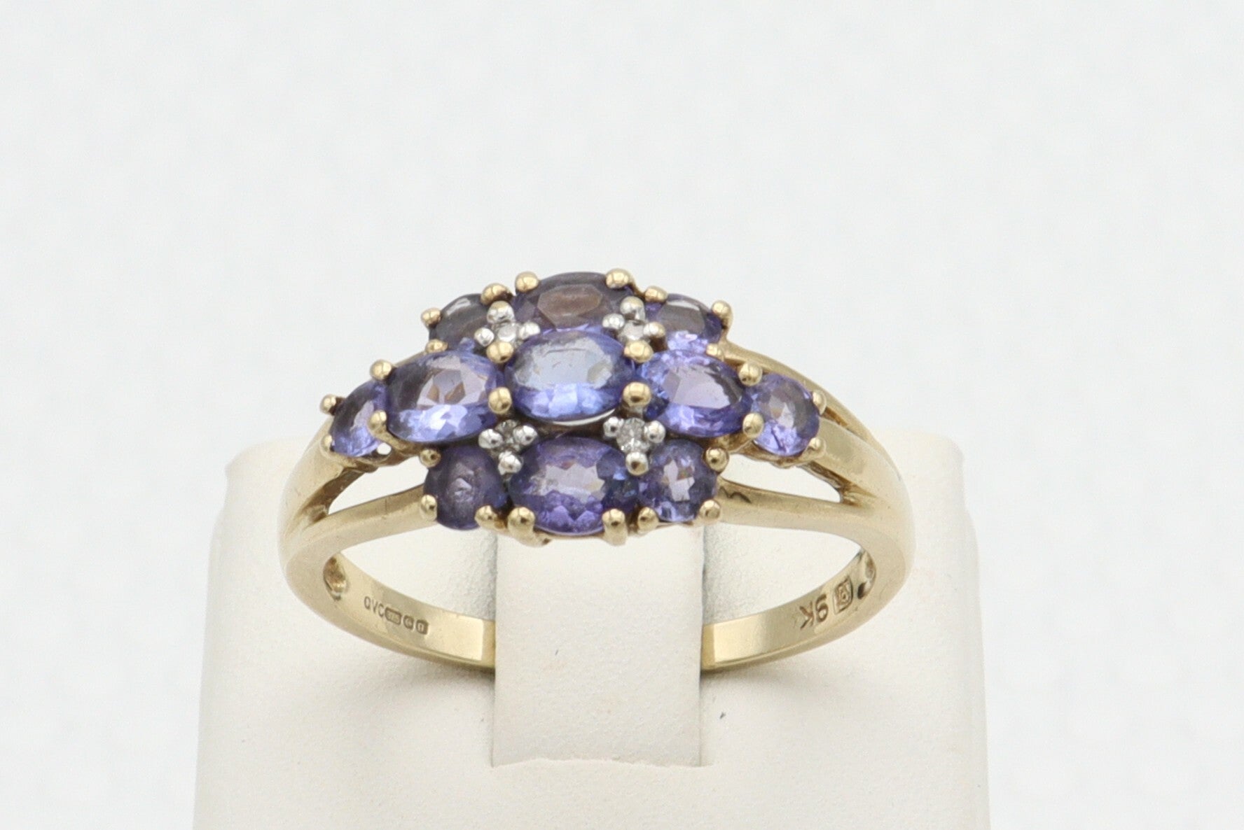 9 Karaat. Vintage ring met tanzaniet en diamanten Maat: 17.8. Nr: 2020/736,