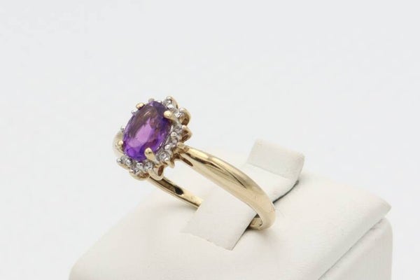 9 Karaat. Vintage ring met amethist en diamanten Maat: 16.3. Nr: 2020/740.