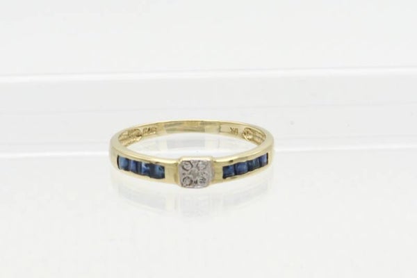 Vintage ring met saffier en diamanten. Maat: 17.3. 2020/746.