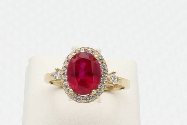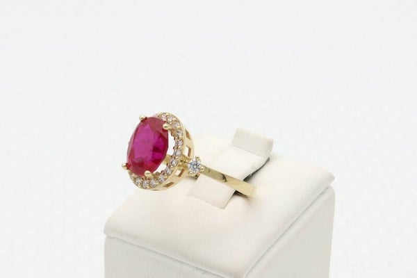 14 Karaat. Gouden vintage ring met robijn en diamonds. Maat:17. Nr: 2020/756.