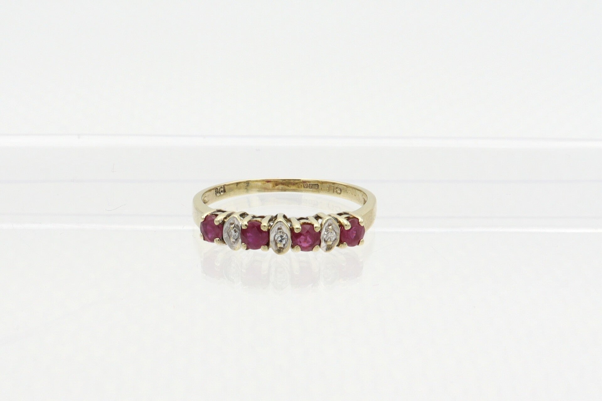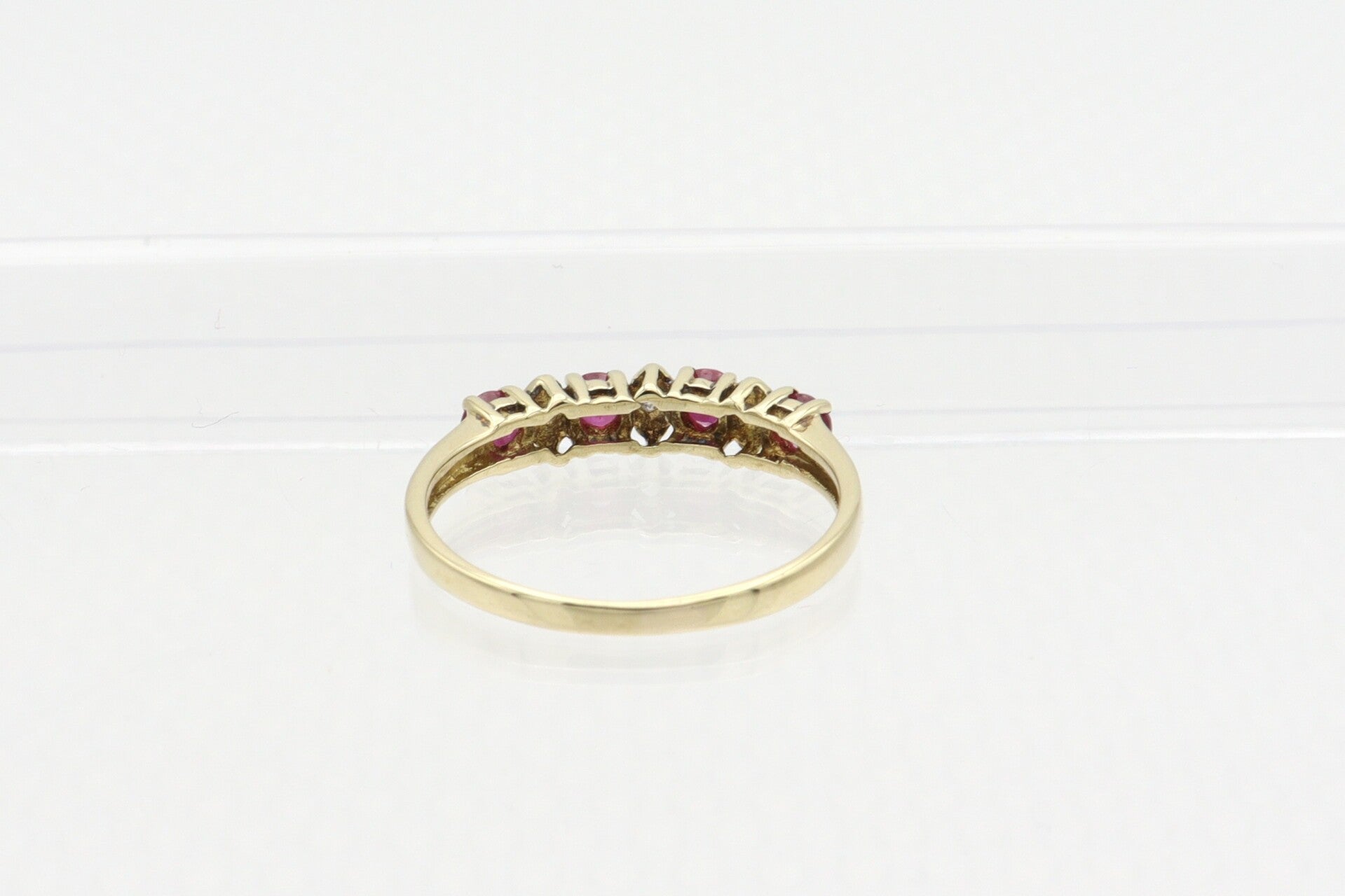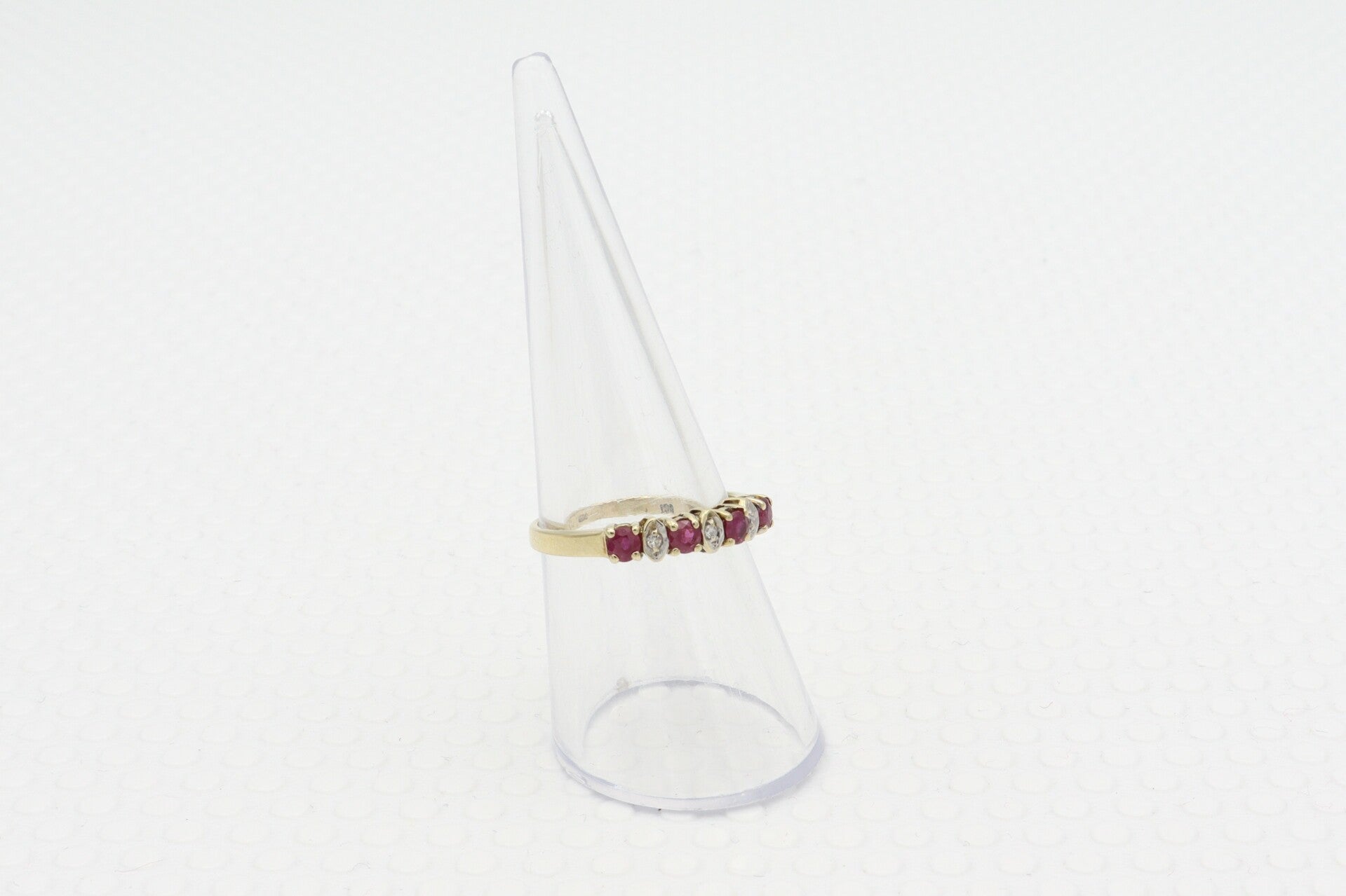 9 Karaat. Vintage ring met robijn en diamant. Maat:17.75. Nr: 2020/765.