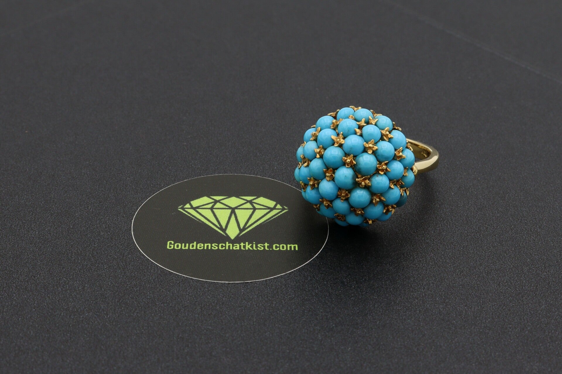Gouden vintage ring met turkoois. Maat: 17.75. 2020/805.