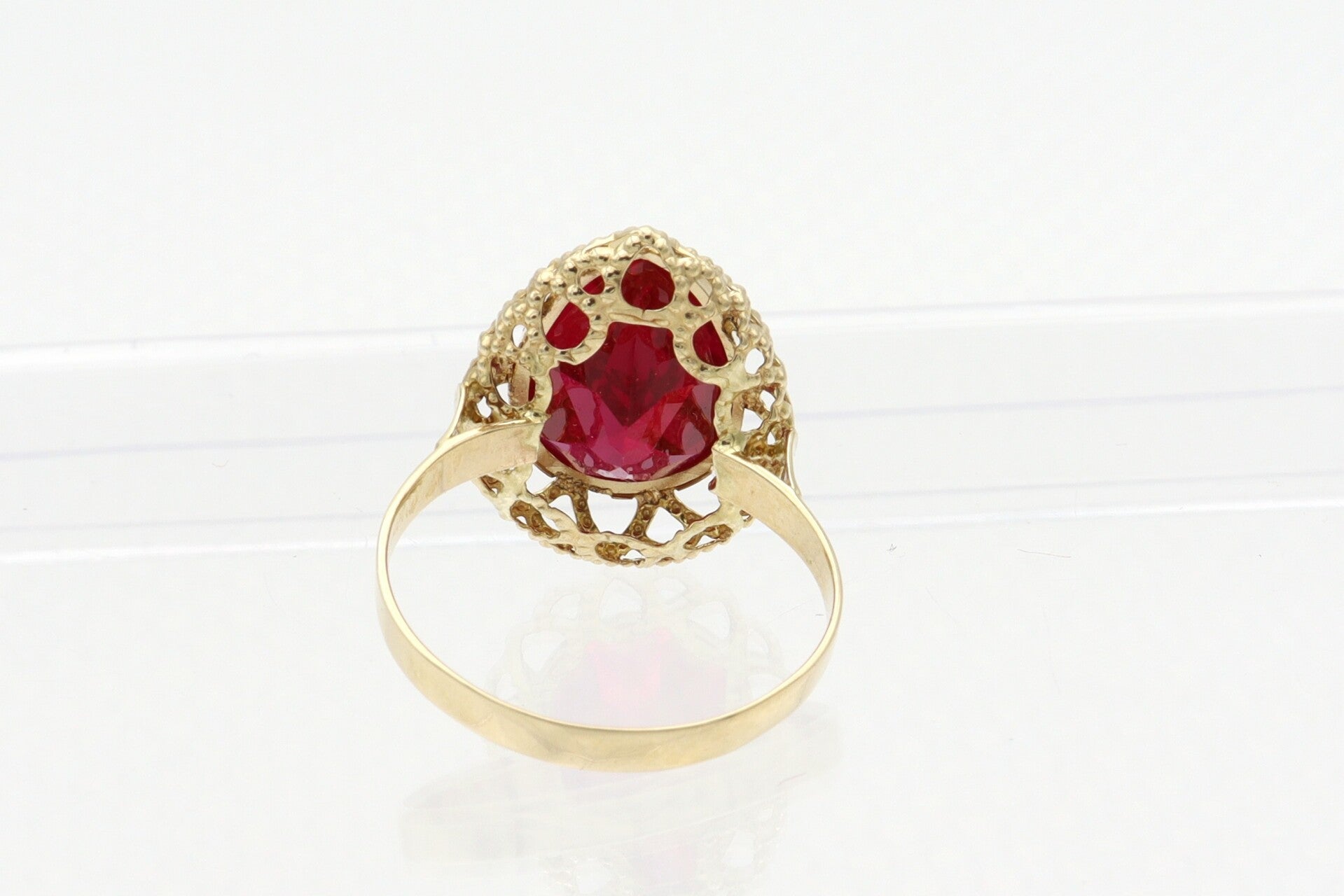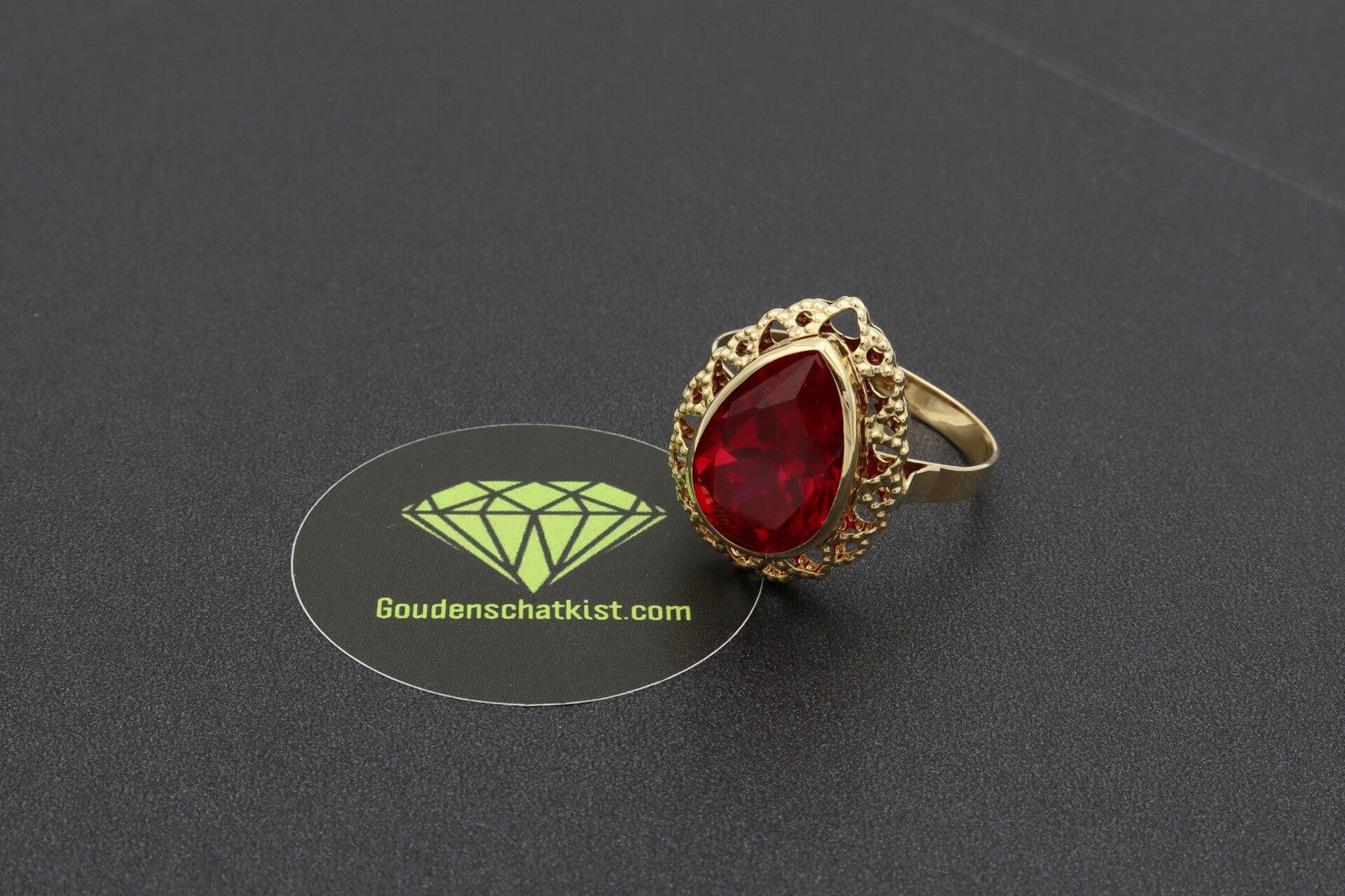 14 Karaat. Gouden vintage ring met robijn. Maat: 18.5. Nr: 2020/813.
