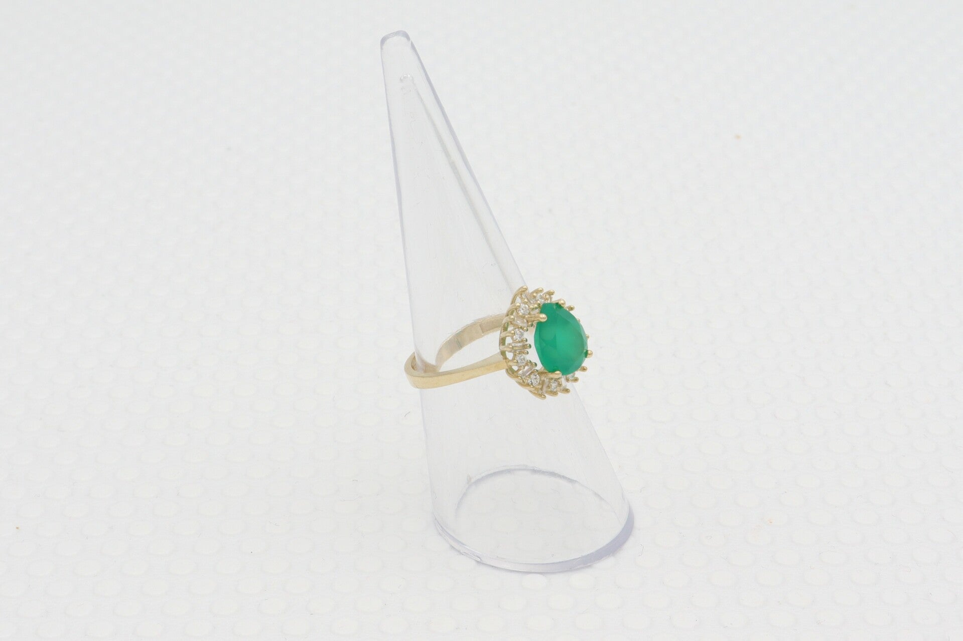 14 Karaat. Gouden vintage ring met smaragd en diamonds.Maat:17.1. Nr: 2020/823.