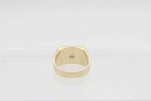 Saffier: 12 mm x 15 mm.Gewicht: 7.4 gram.Kleur Goud: Geel.Gemerkt : 585.Conditie: Nieuw ongedragen.(typefouten voorbehouden)