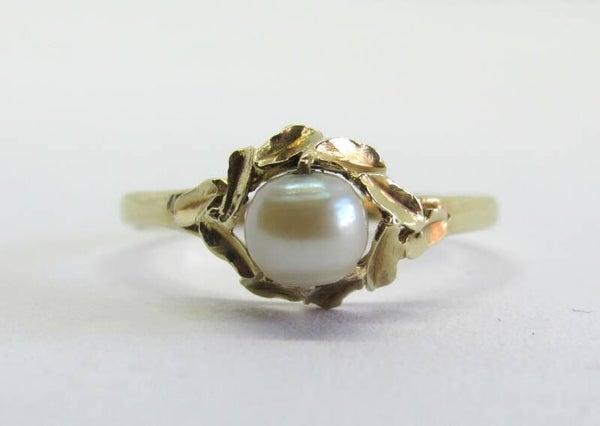 9 Karaat. Antieke ring met parel. Maat 17.2. Nr:19/A126.