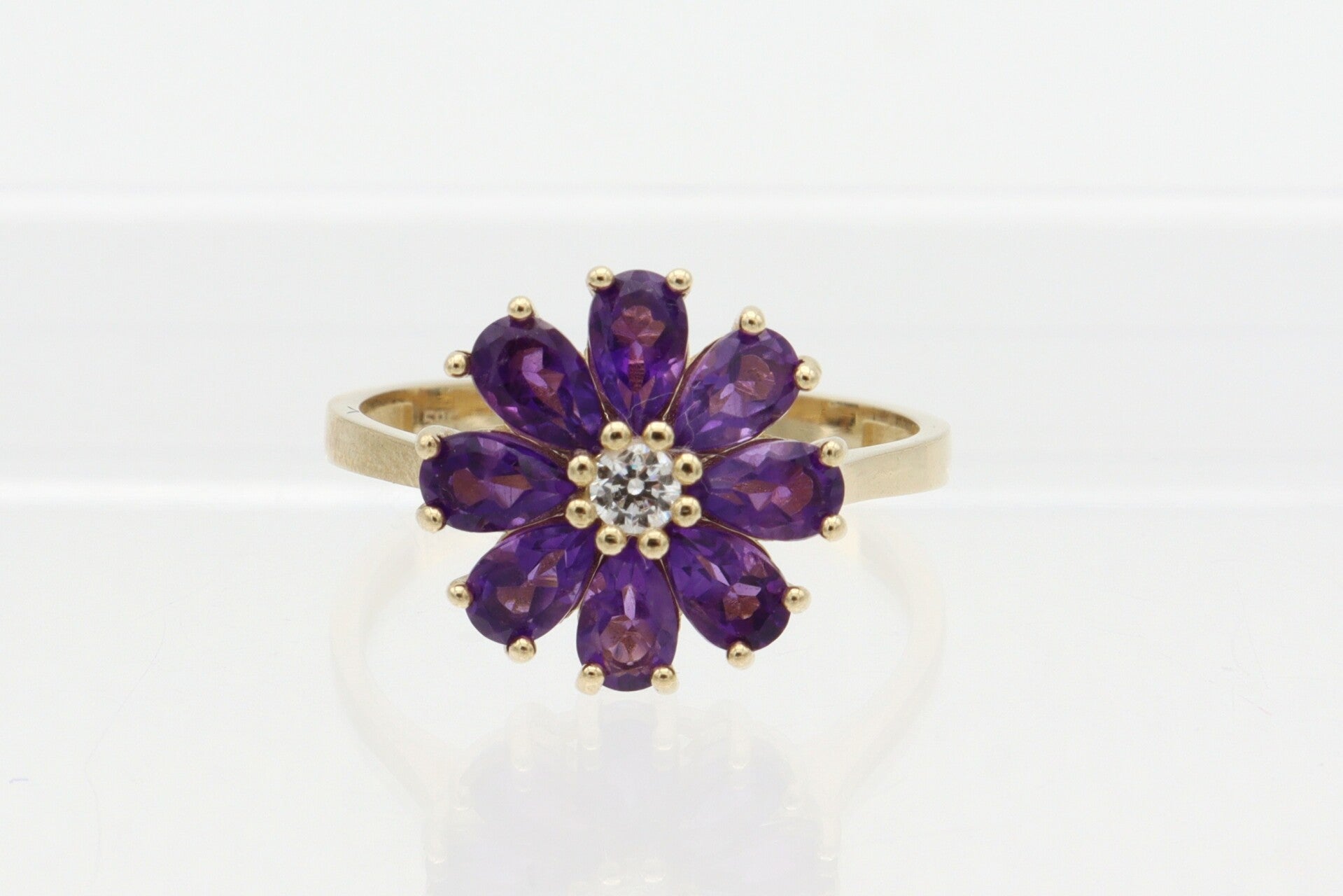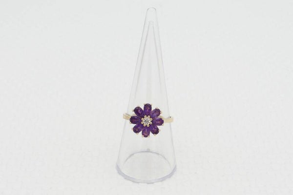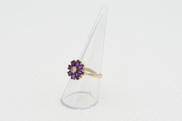 Gouden vintage ring met amethist en diamonds. Maat: 18.1. 2020/879.
