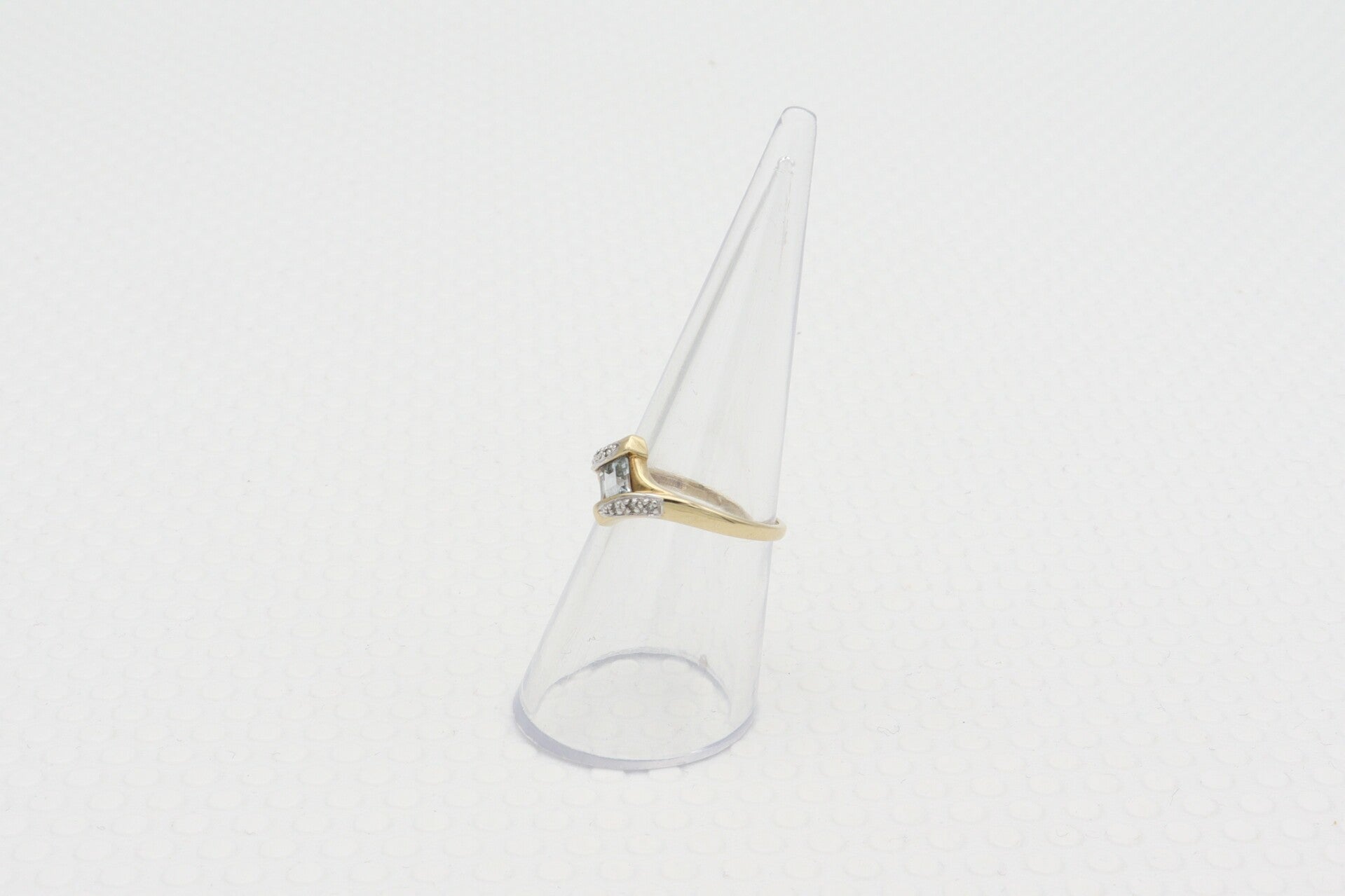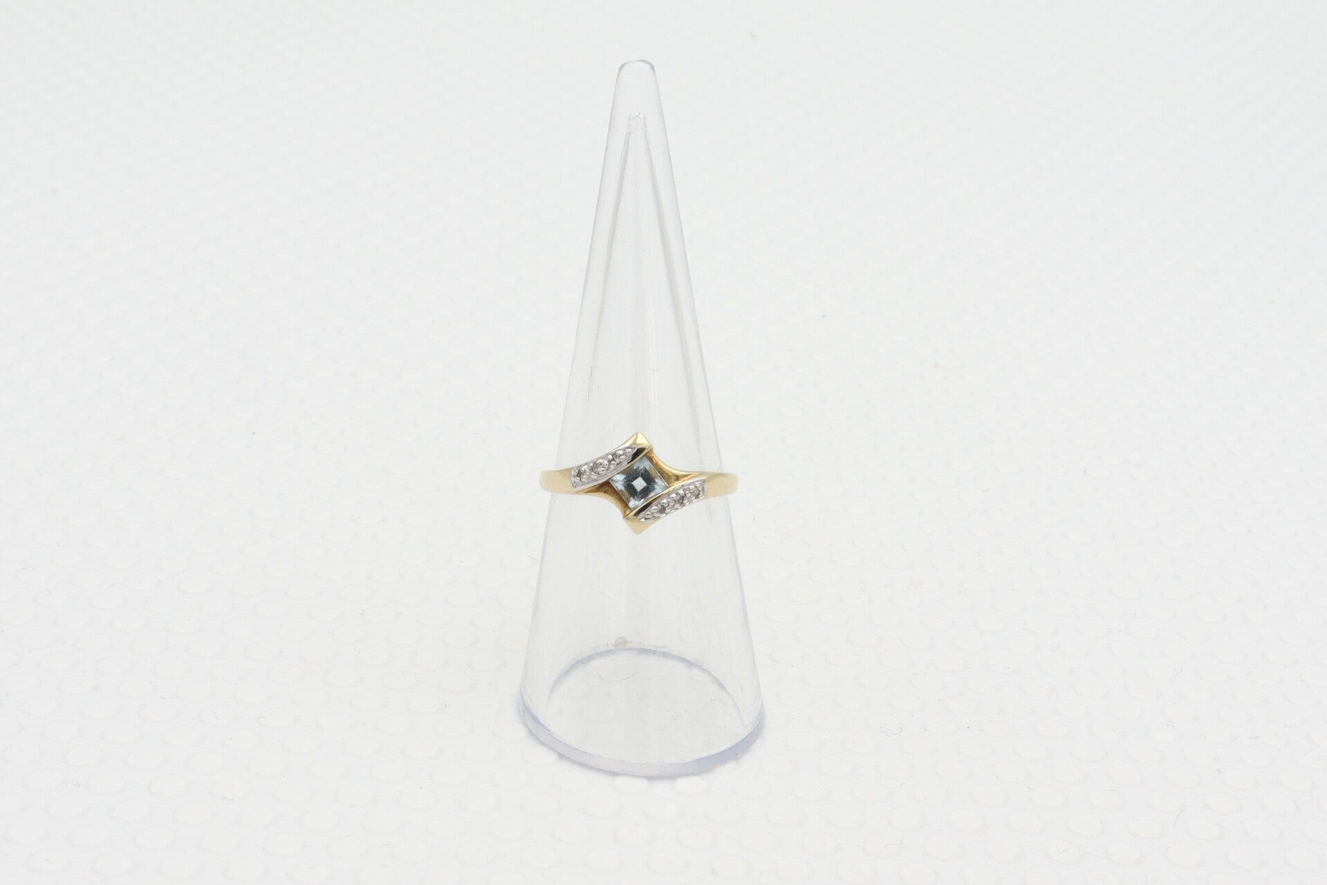 Vintage ring met aquamarijn en diamanten. Maat: 17.1. 2020/882.