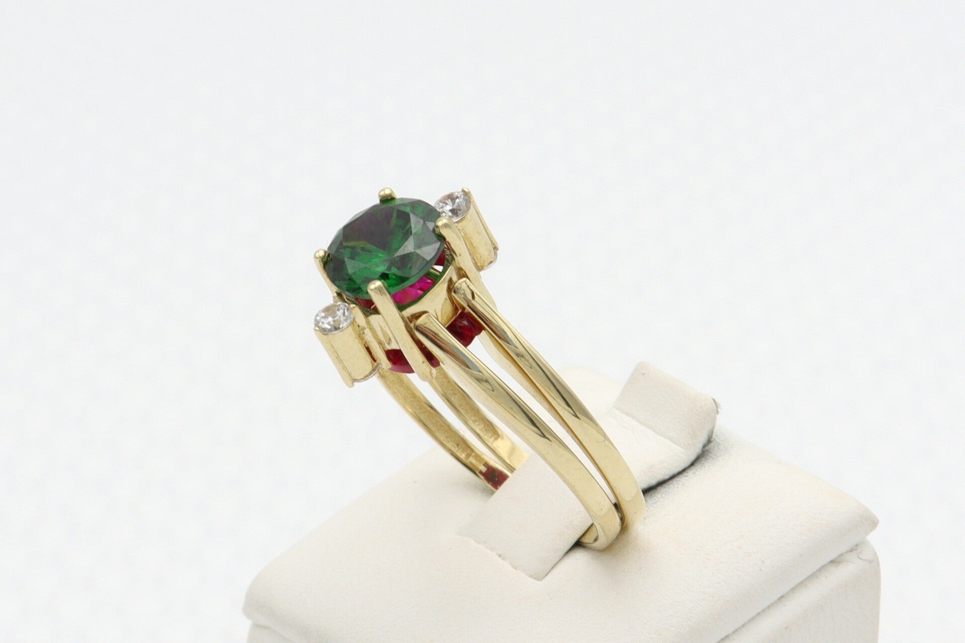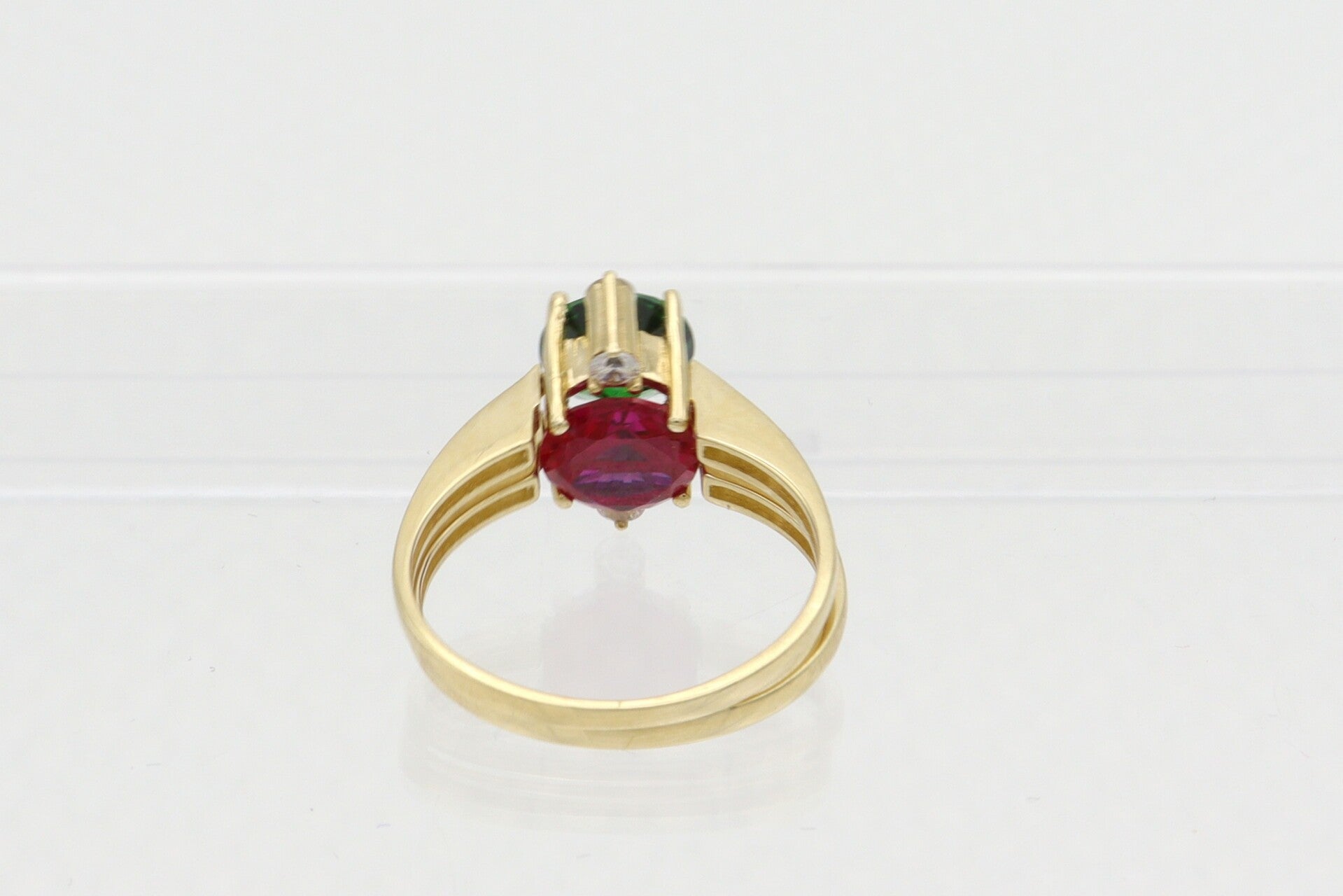 Gouden vintage vouw ring met amethist en smaragd. Maat: 17.1. 2020/909.
