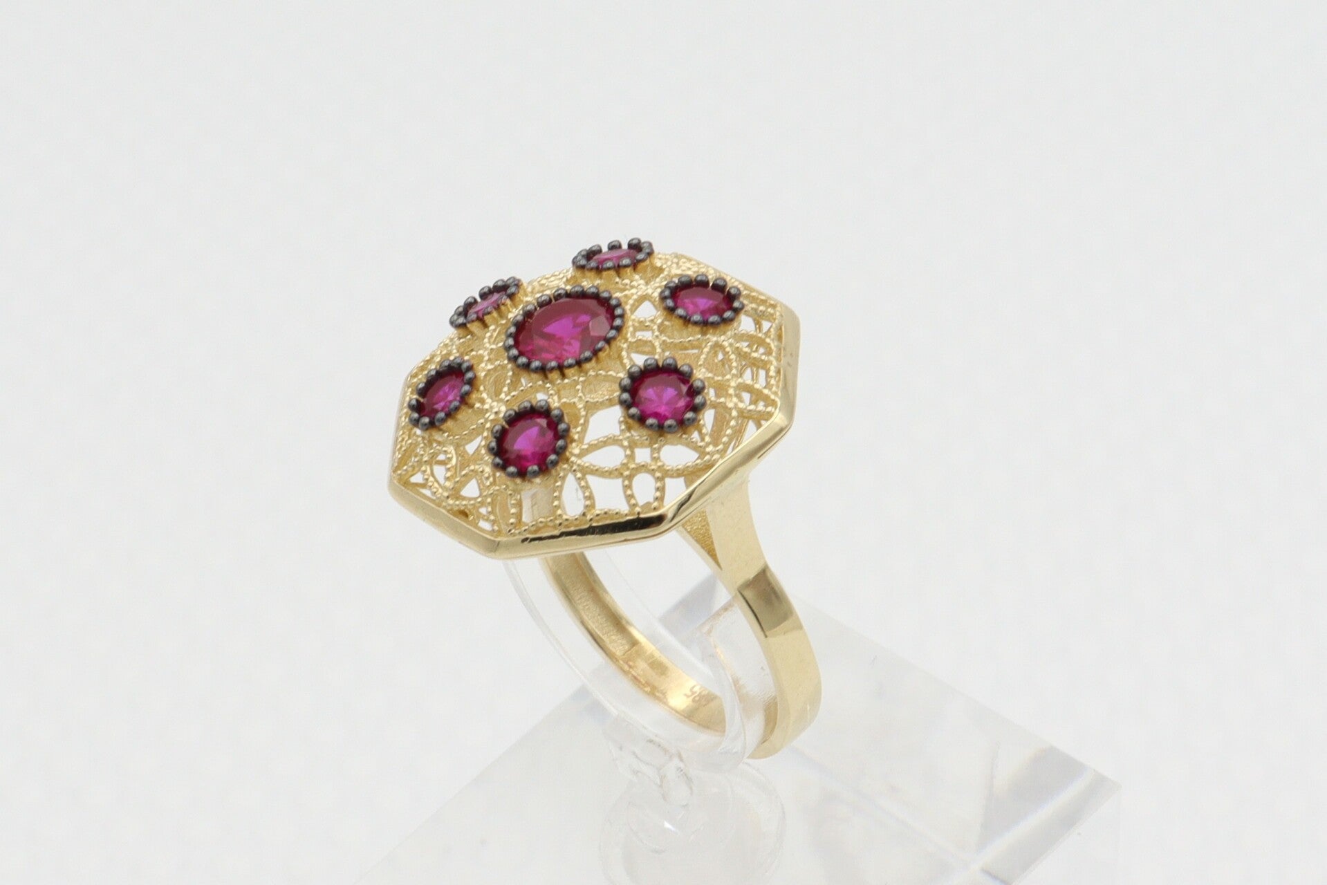 Gouden vintage ring met robijn. Maat: 18.25. 2020/916.