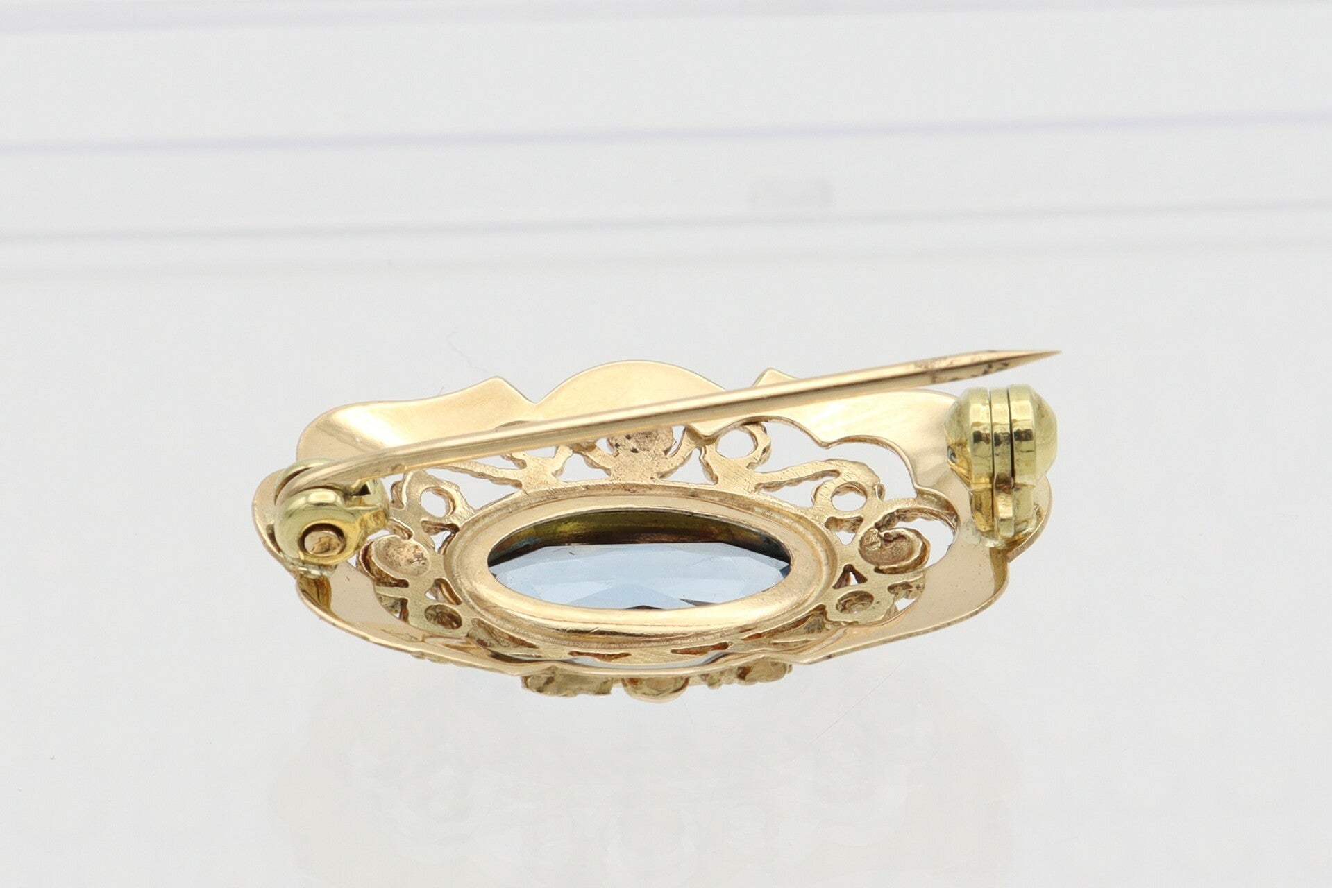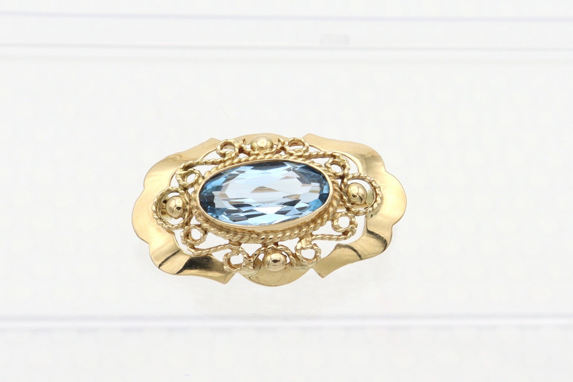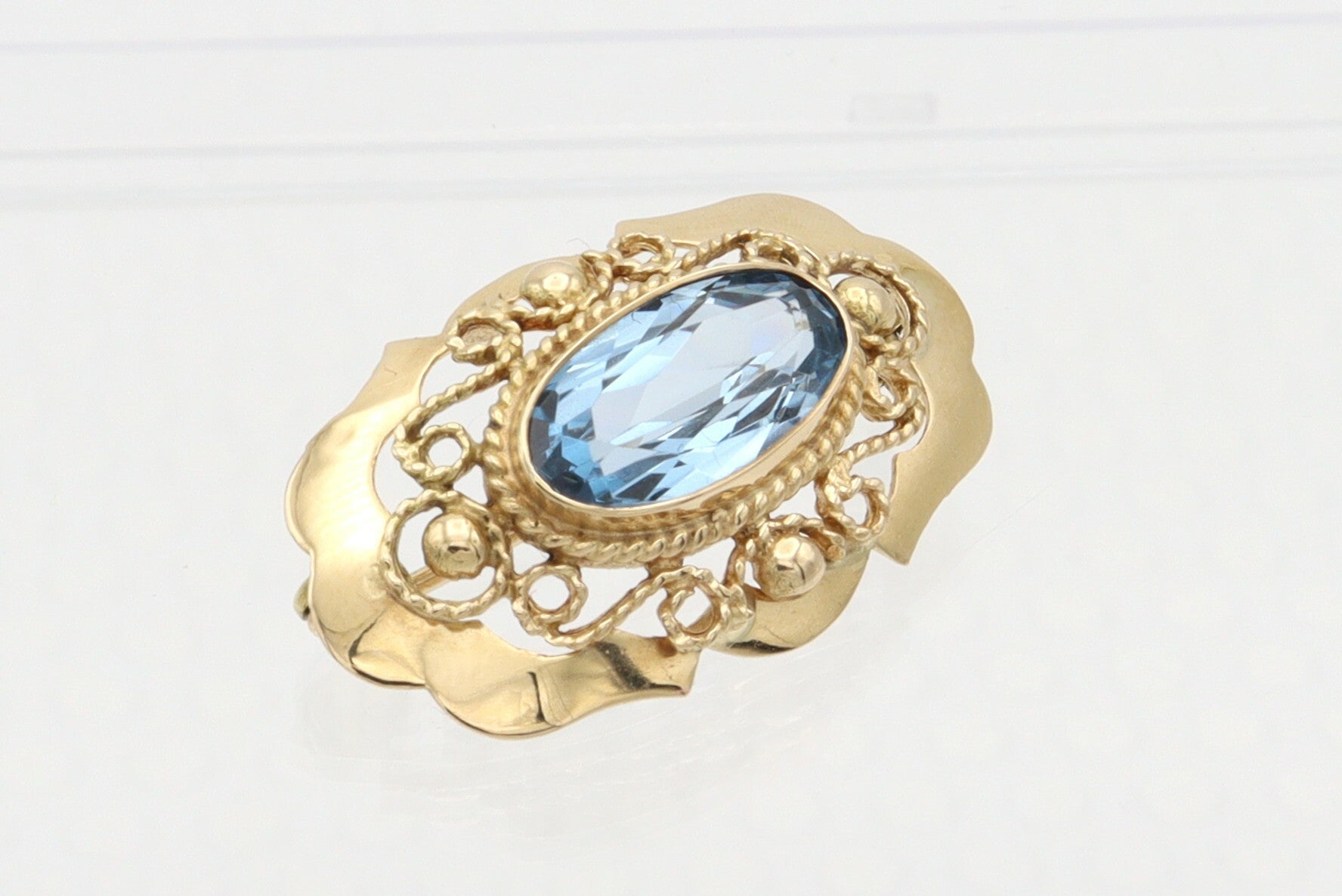 Gouden antieke broche met aquamarijn. 2020/933.