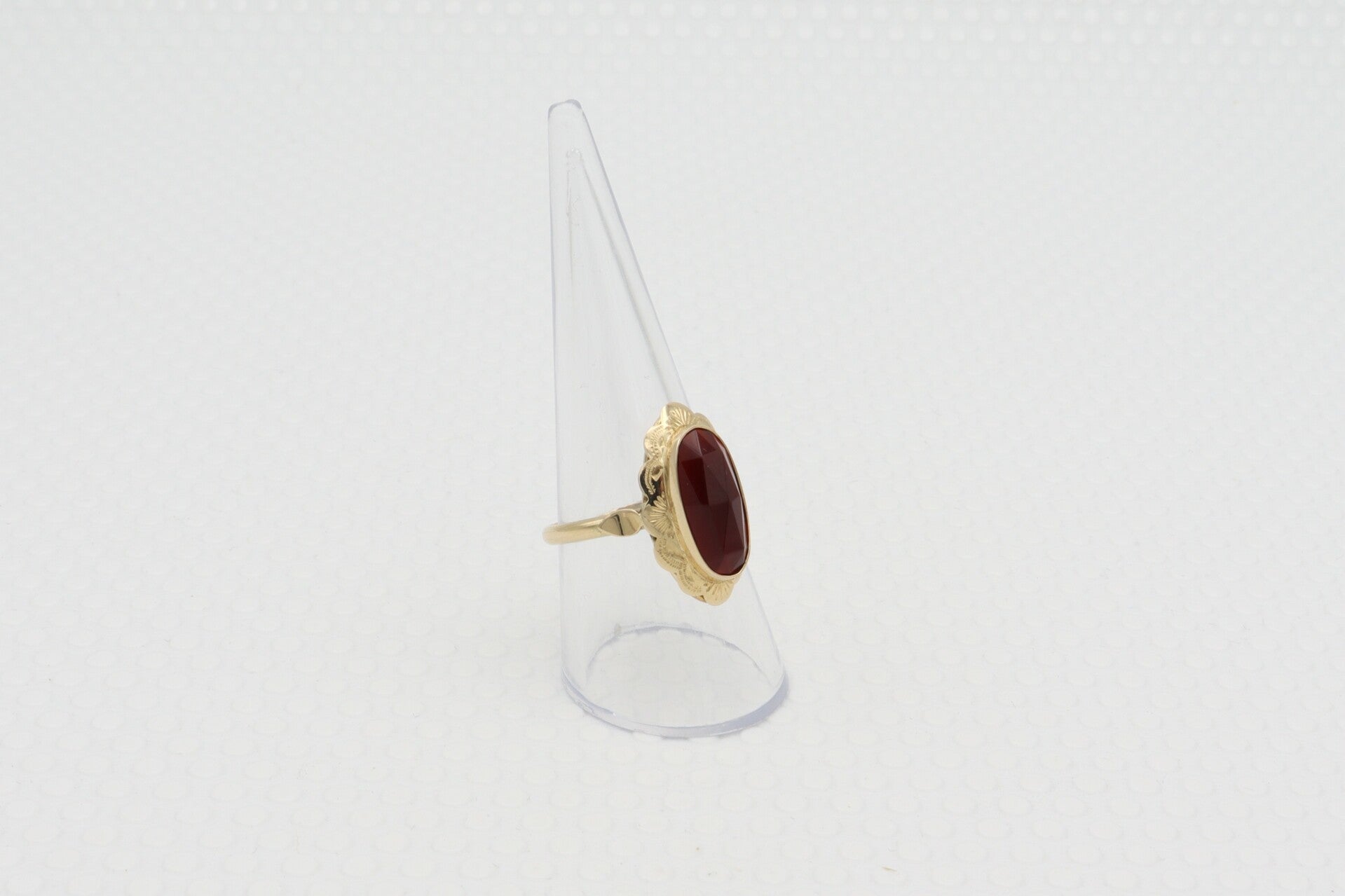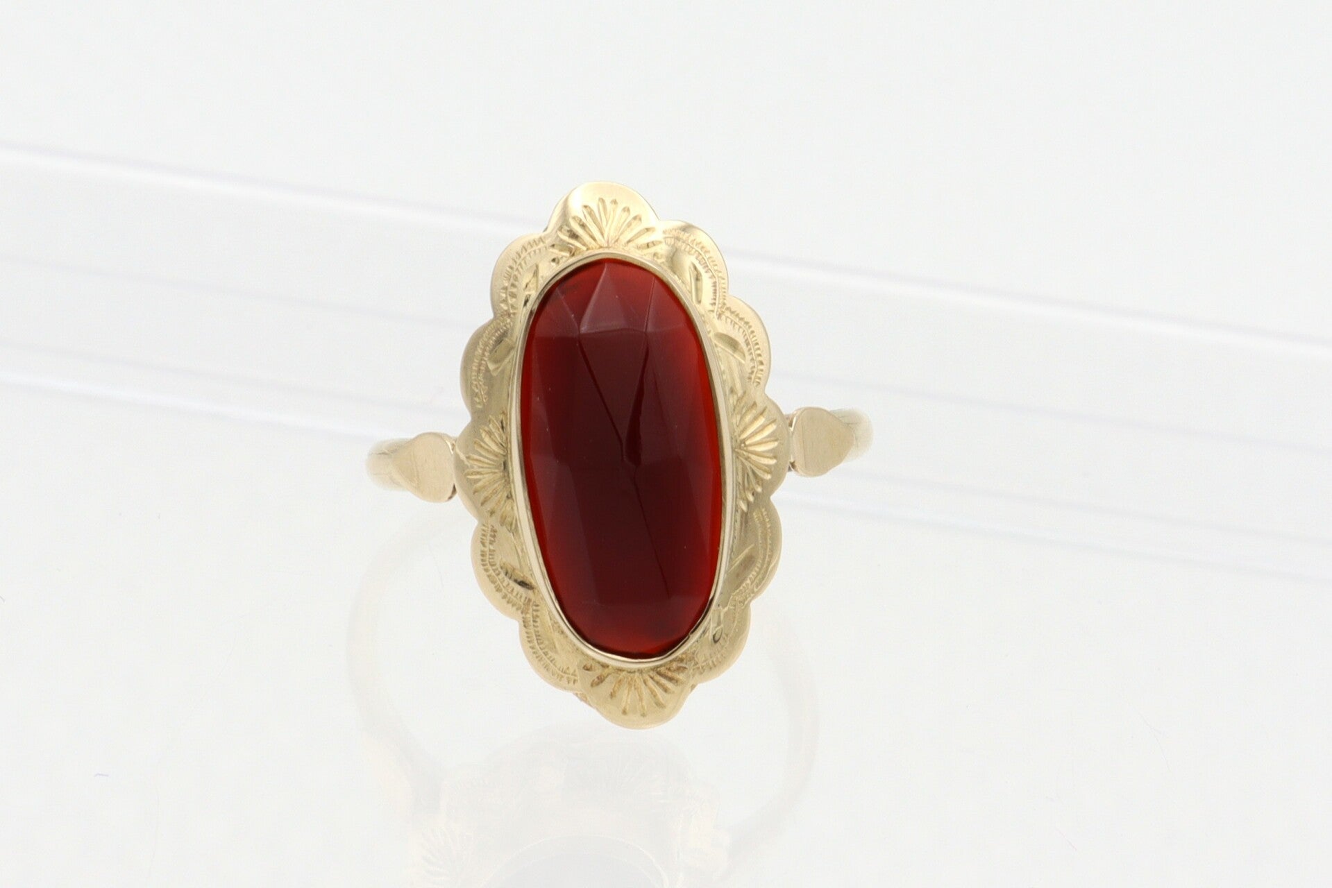 14 Karaat. Gouden vintage ring met carneool. Maat: 18.75. Nr: 2020/950