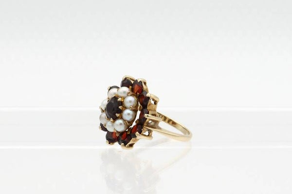 9 Karaat. Vintage ring met granaat en zaadparel. Maat: 18.25. Nr: 2020/952.