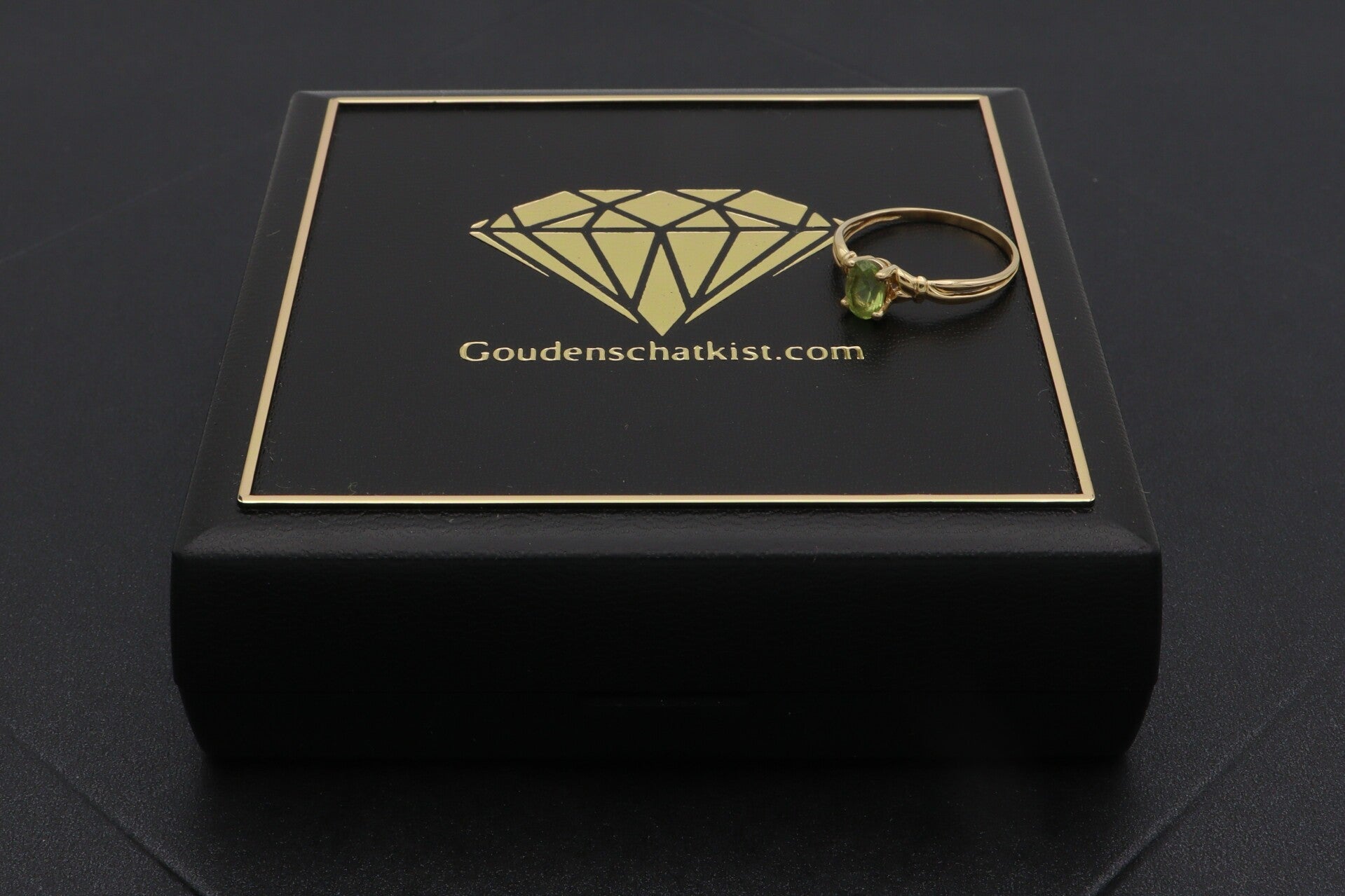18 Karaat. Gouden vintage ring met peridot. Maat: 16.2. Nr: 2020/981.