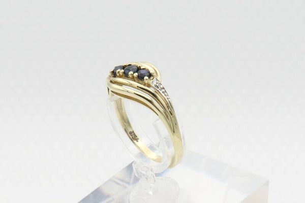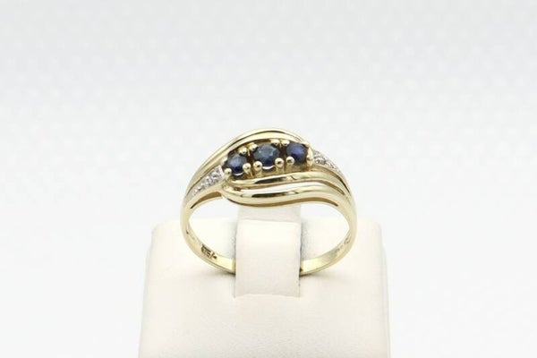 Vintage ring met saffier en diamanten. Maat: 17.5. 2020/984.