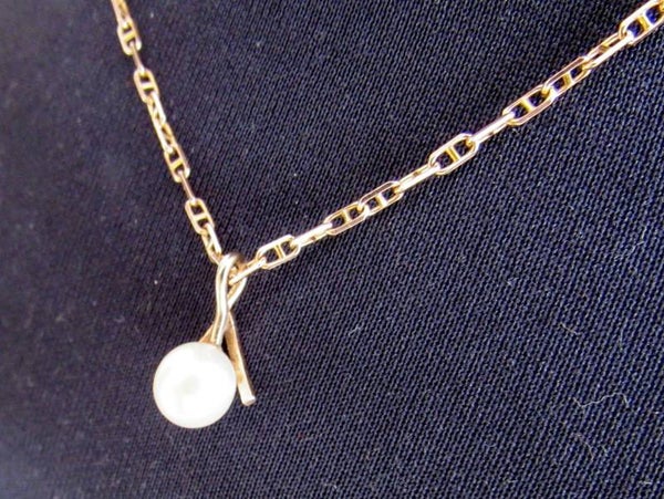 9 Karaat. Vintage ketting met prachtige parelhanger. Nr: 18/413.