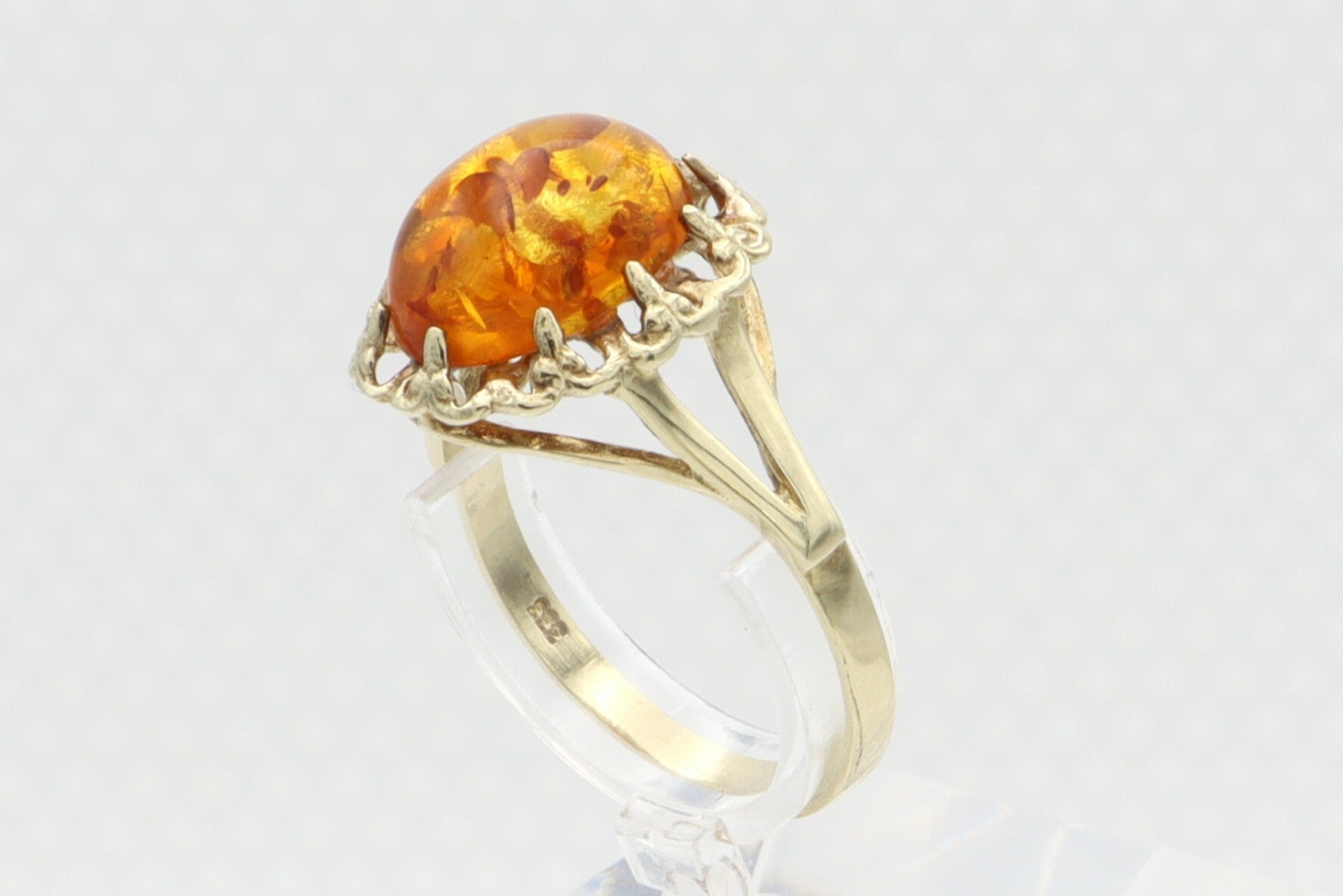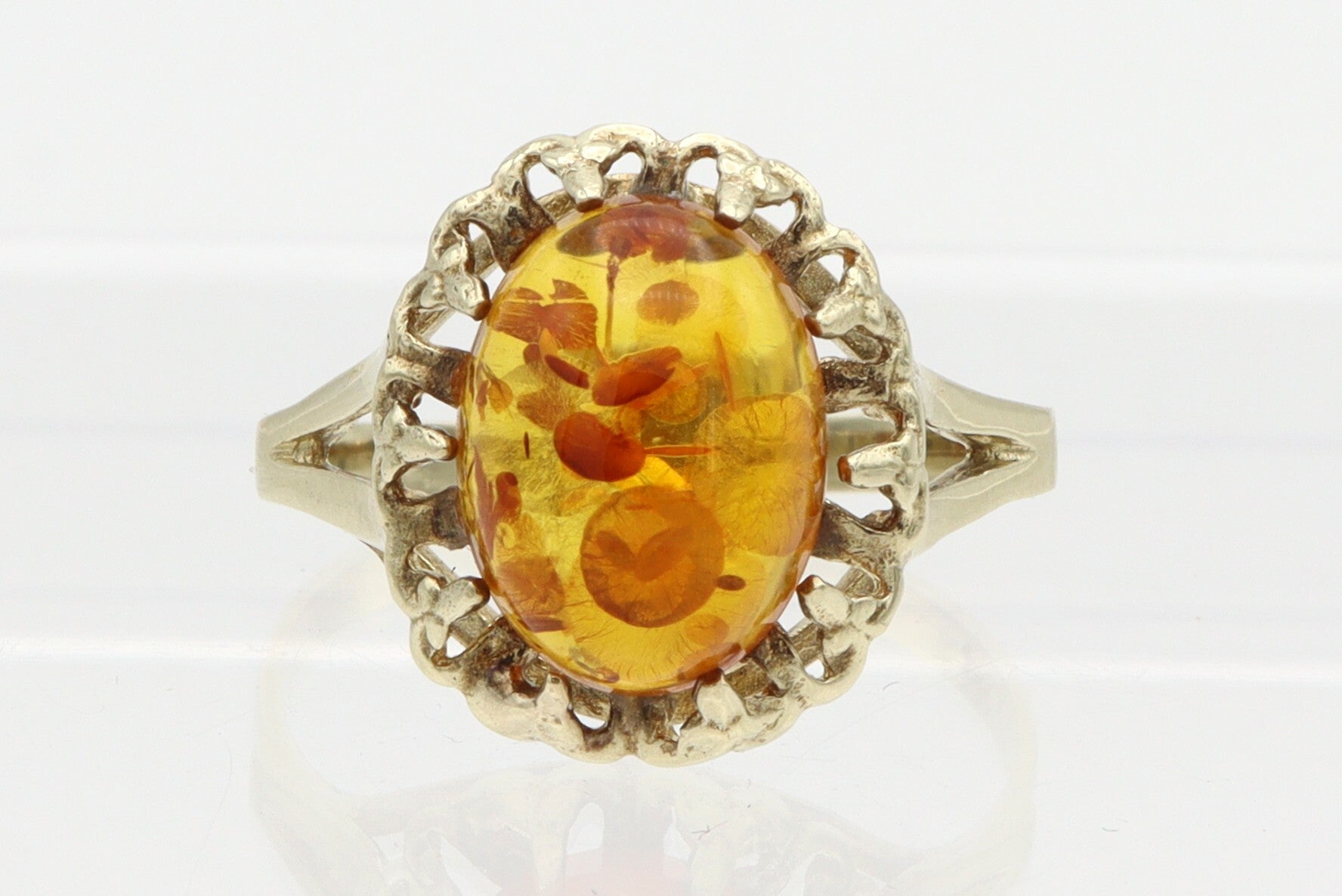 Antieke ring met barnsteen. Maat: 18.9. 2021/06.