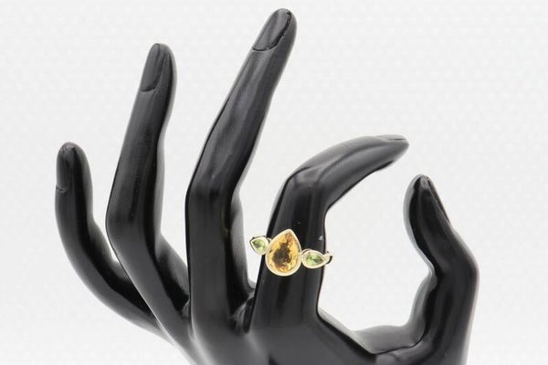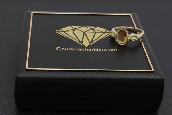 Vintage ring met citrien en peridot. Maat: 17.1. 2021/71.
