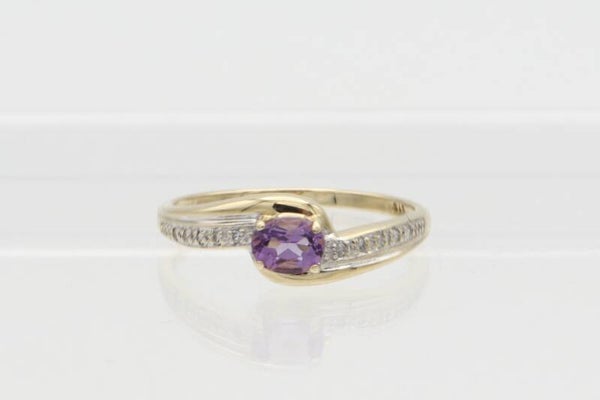 Vintage ring met amethist en diamanten. Maat: 17.2. 2021/101.