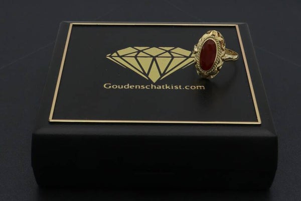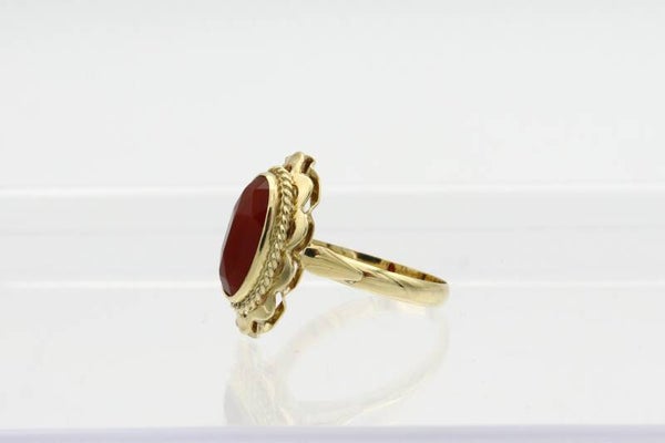 14 Karaat. Gouden antieke ring met carneool. Maat: 16.6. Nr: 2021/130