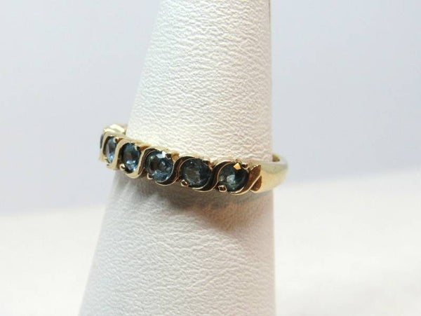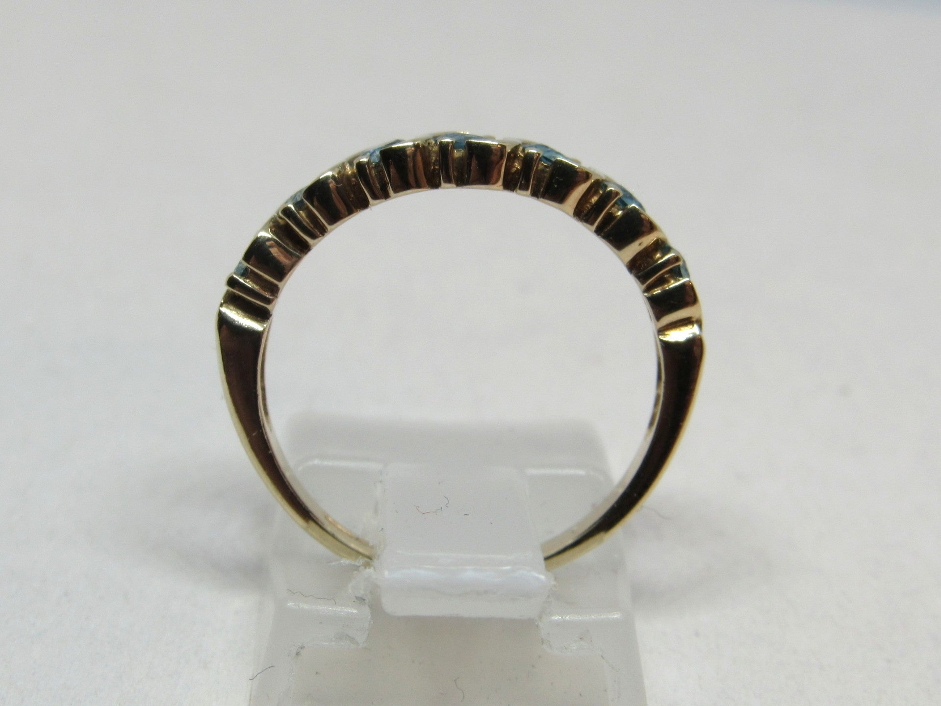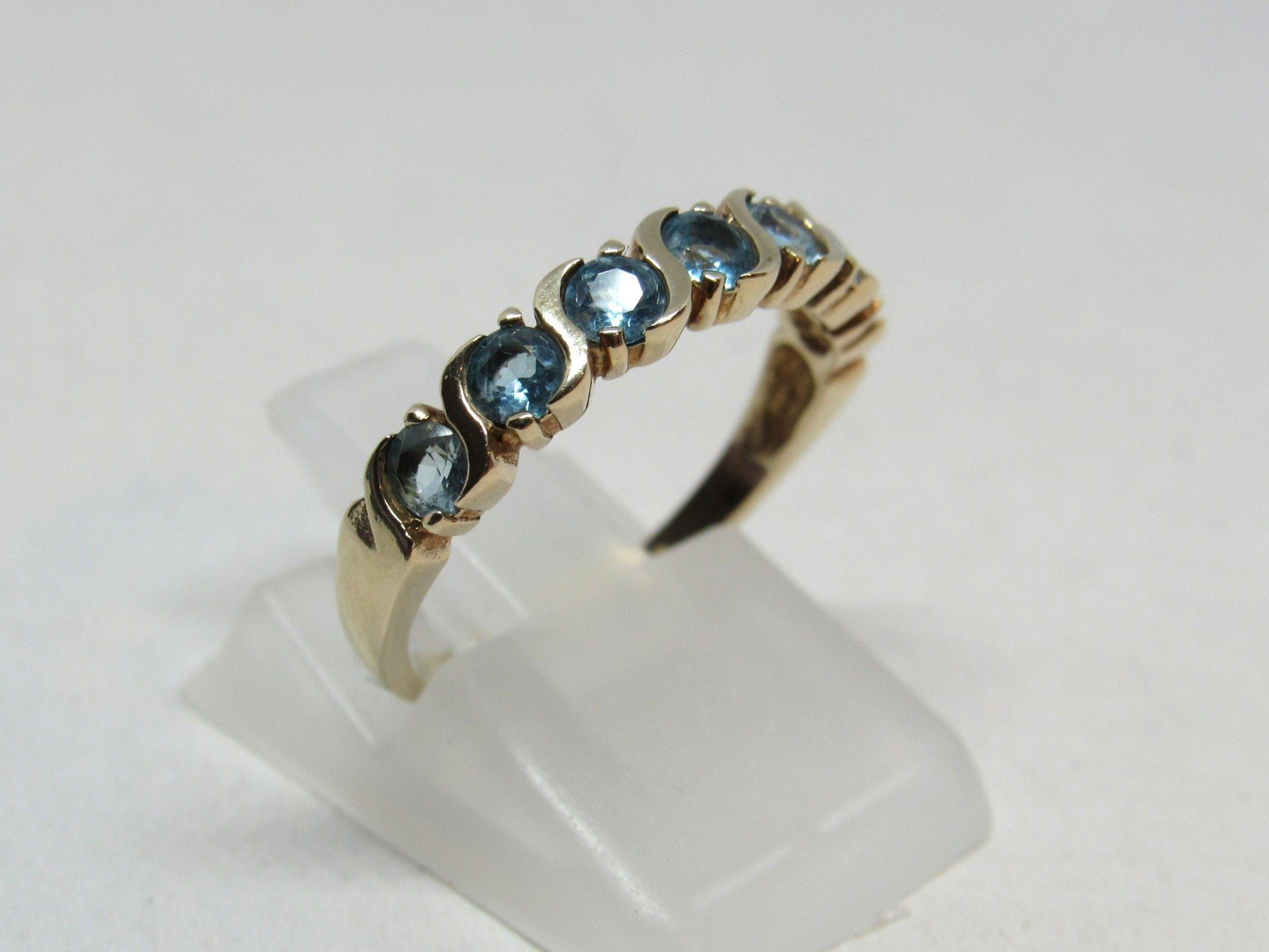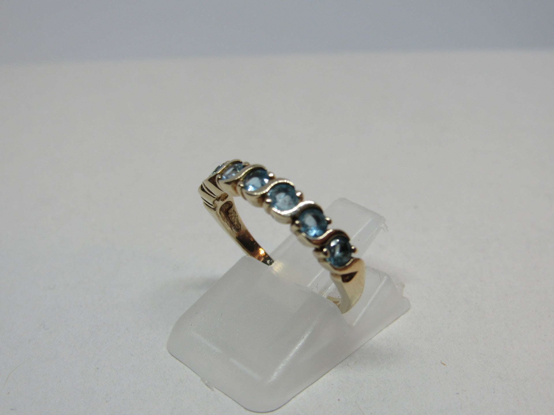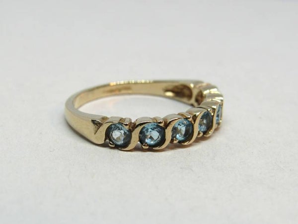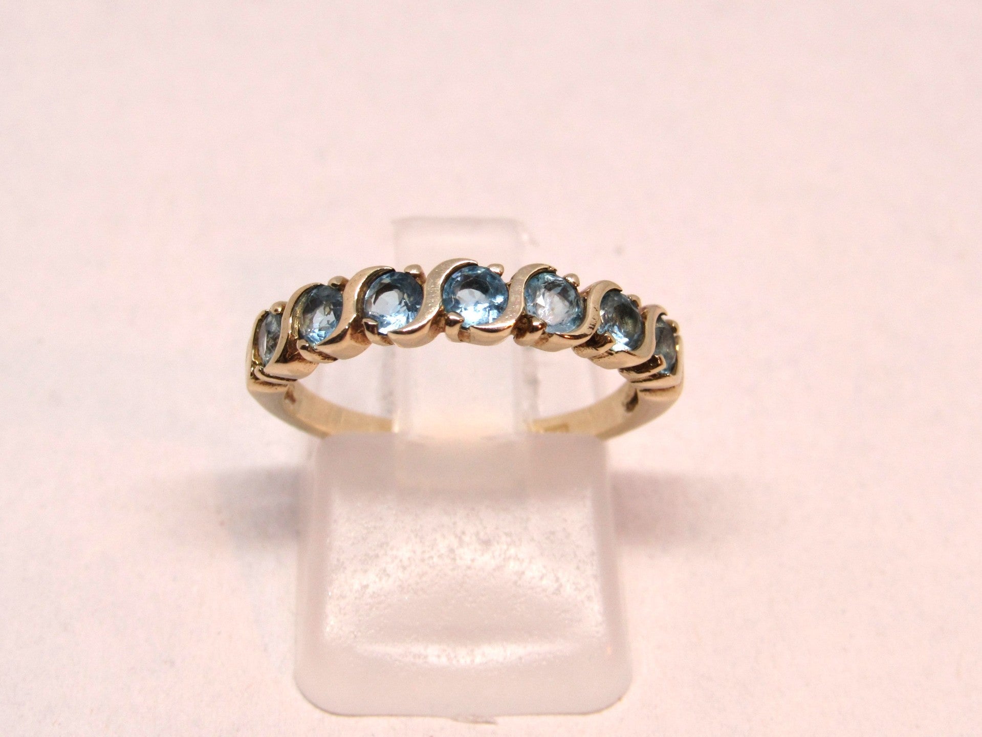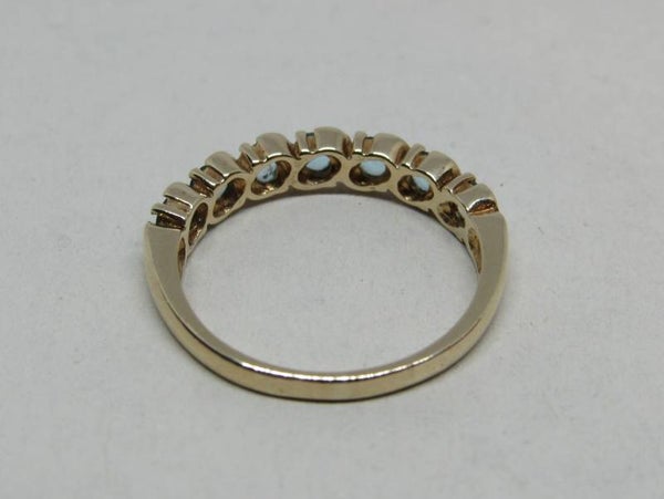 9 Karaat. Ring met 7x topaas. Maat 16.25. Nr: 18/498.