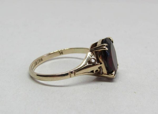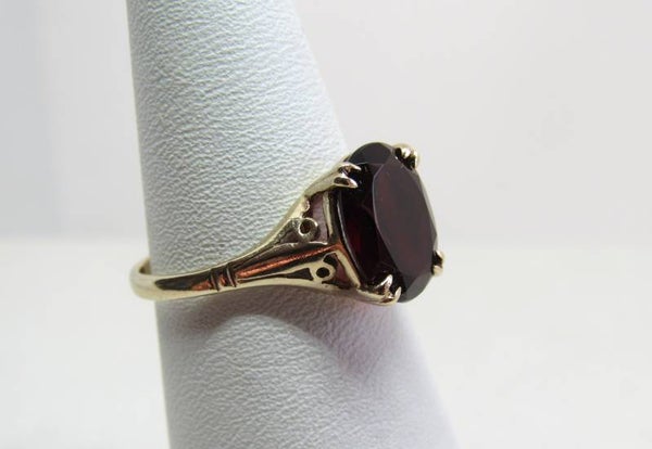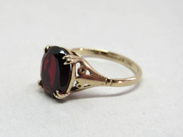 Nr: 18/511. 9 Krts. Gouden ring met Granaat. Maat: 16.6.