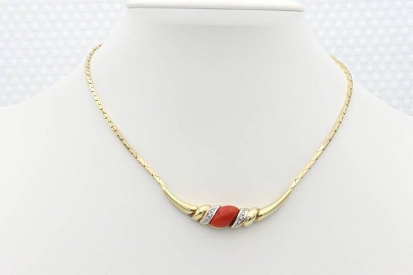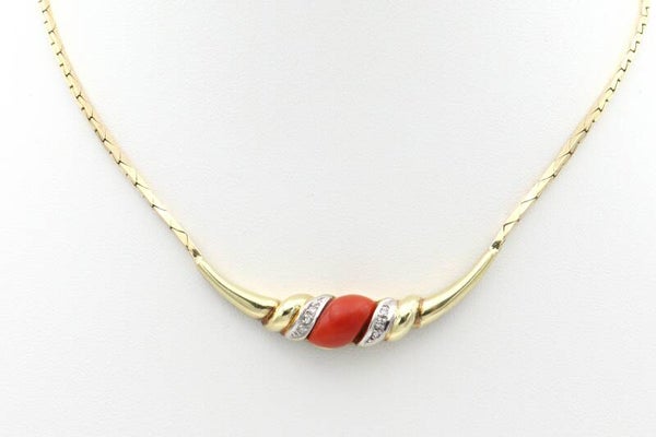 Gouden ketting met bloedkoraal en 6x diamanten. 2021/202.