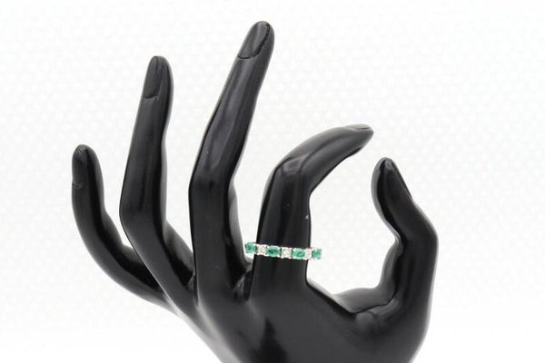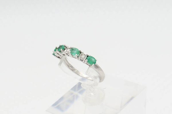 Wit gouden ring met smaragd en 3x diamanten. Maat: 17.75. Nr: 2021/203.