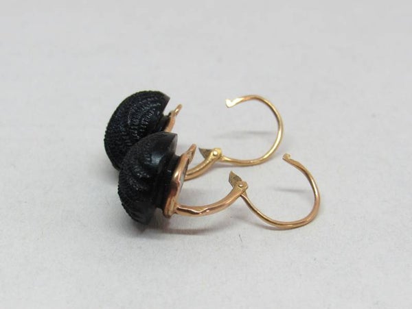 Nr: 18/534. 18 Krts. Antieke Rosé Gouden Oorbellen. Met Zwarte Git Steen.
