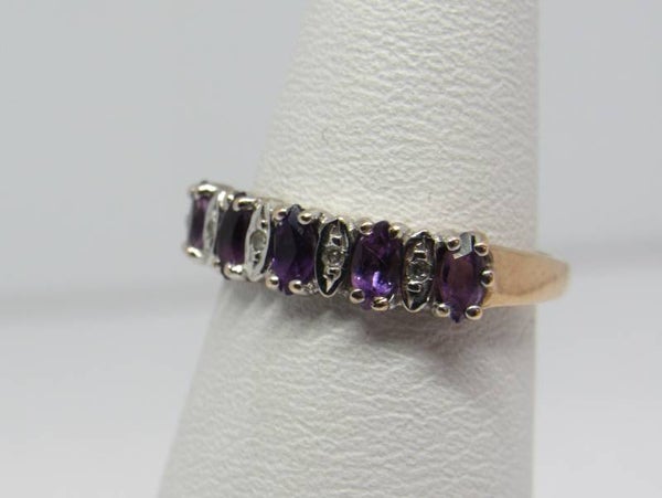 9 Karaat. Ring met 5x amethist en 4x diamant. Maat 15.25. Nr: 18/539.
