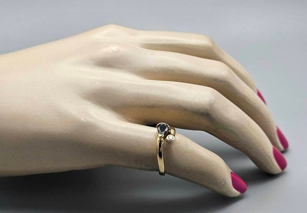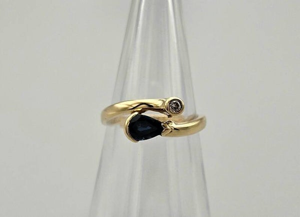Deze prachtige vintage ring is gemaakt van 14 karaat geelgoud. De ring is gezet met diamant en prachtige blauwe saffier edelstenen. De saffier is in facet geslepen en valt mooi op. De diamant is briljant geslepen.