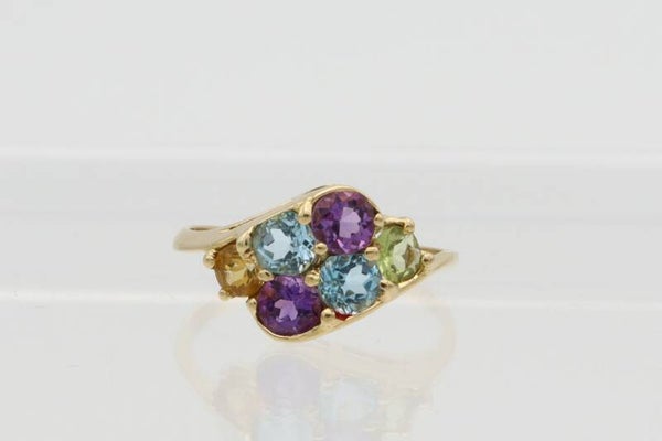Gouden vintage ring met peridot,amethist,citrien en topaas . Maat:16.8. 2021/229.