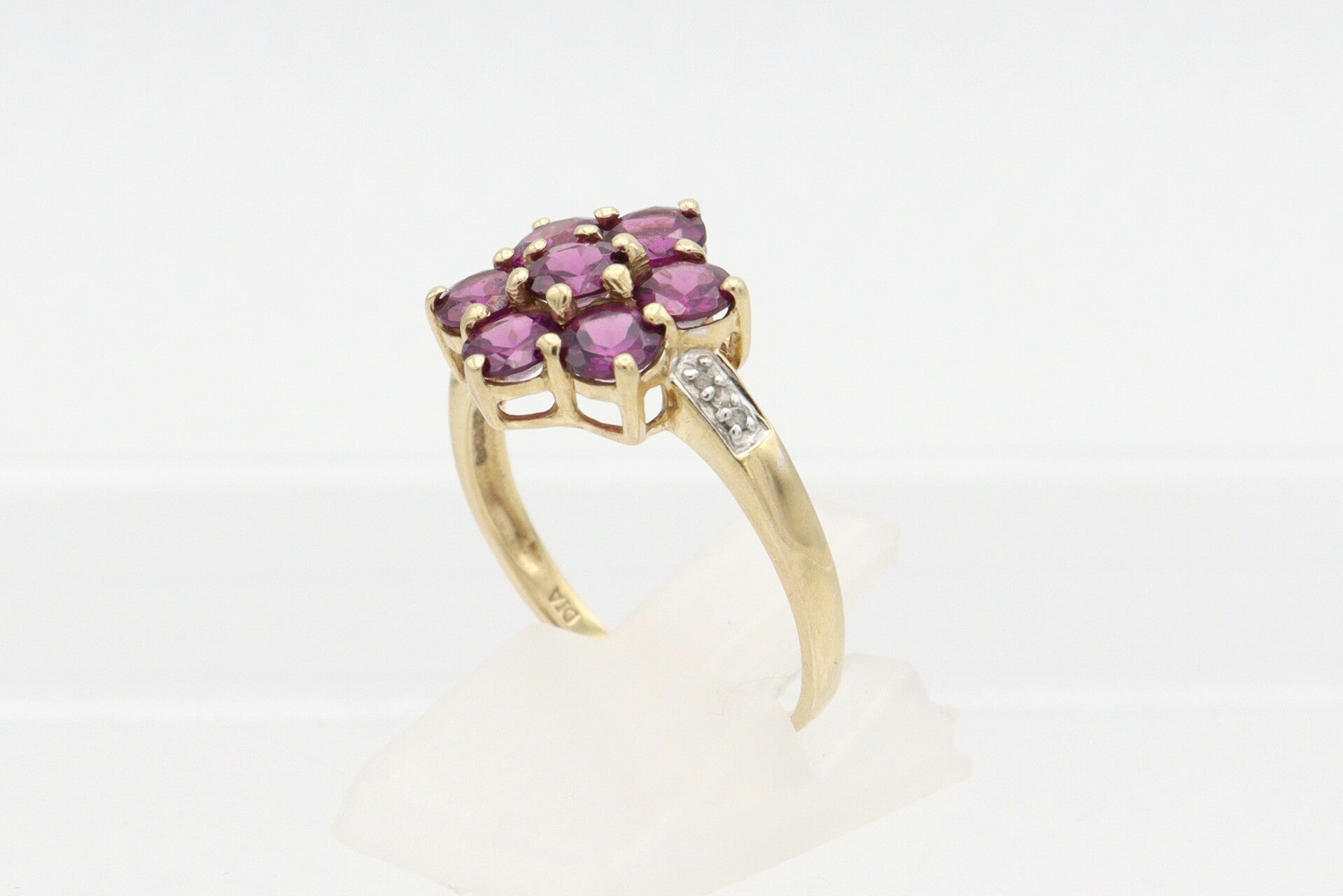 Vintage ring met rhodoliet granaat en diamanten. Maat: 17.9. 2021/259.