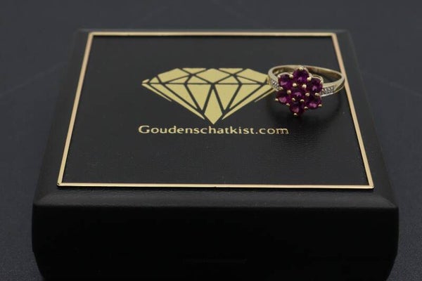 Vintage ring met rhodoliet granaat en diamanten. Maat: 17.9. 2021/259.