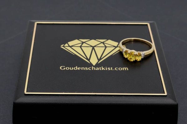 9 Karaat. Vintage ring met gele saffier en diamant. Maat: 17.2. Nr: 2021/269.