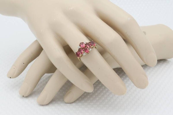 Vintage ring met toermalijn en diamant. Maat:17.3. Nr: 2021/287.