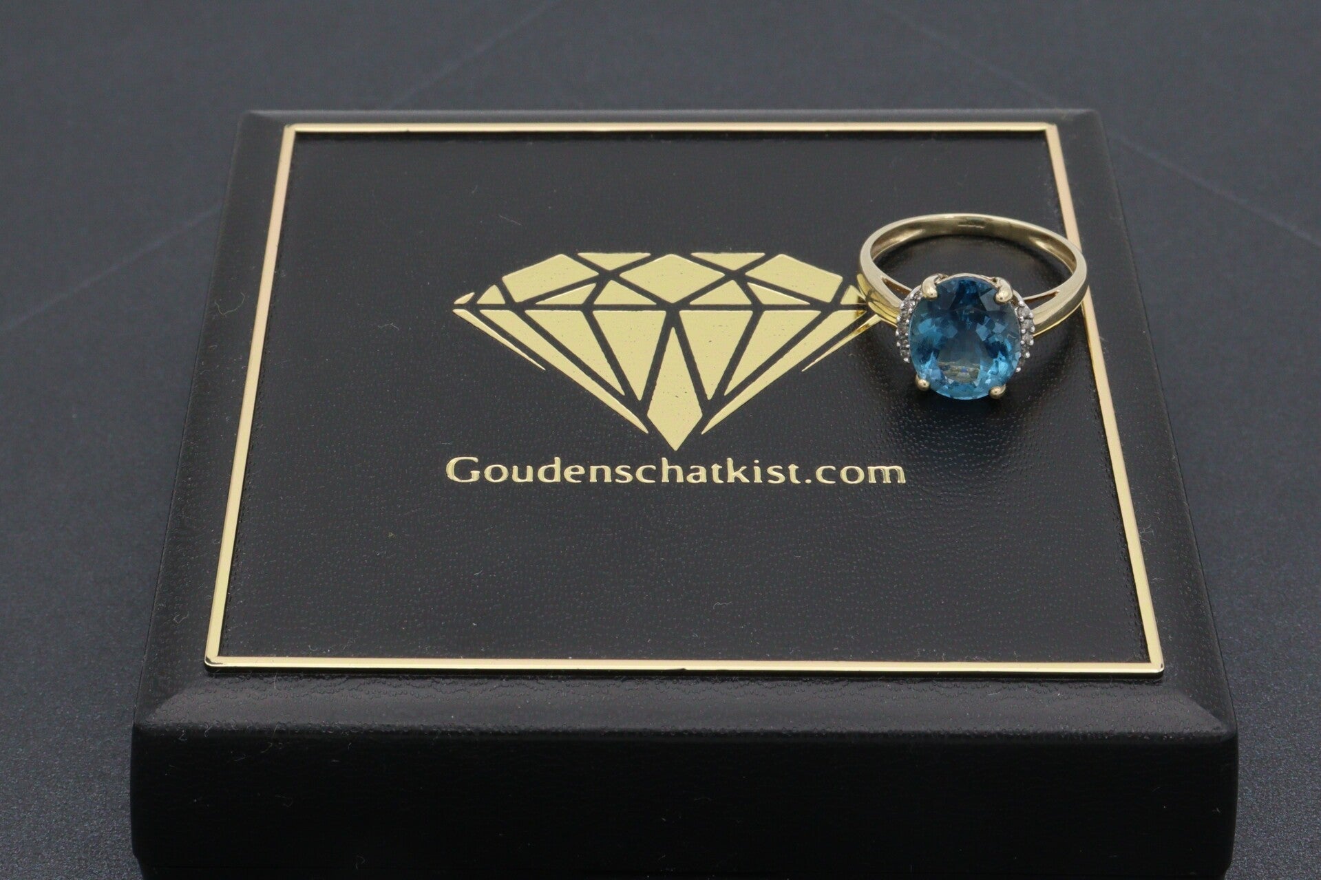 Vintage ring met topaas en diamant. Maat:17.2. Nr: 2021/301