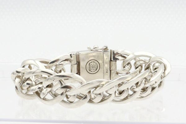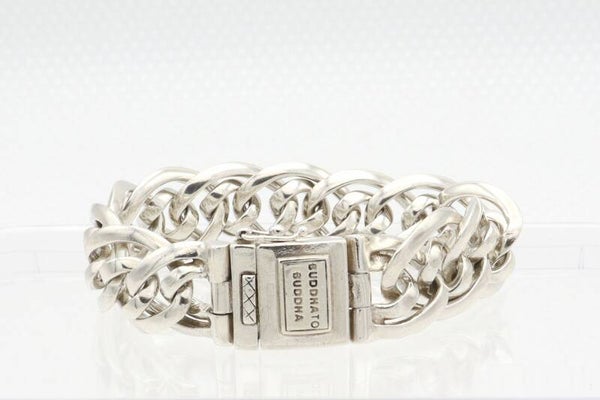 De Nathalie is een van de bekendste schakels uit de Heritage collectie. De aparte dubbele schakels die typisch zijn voor de Nathalie familie maakt deze sterling zilveren armband tot een echte blikvanger! Creëer een vlotte en stoere look met deze tijdloze en handgemaakte armband. De zilveren armband laat zich perfect combineren met andere Buddha to Buddha sieraden.