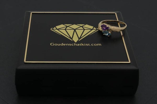 Gouden vintage ring met amethist, topaas en diamant.. Maat: 18.5. 2021/404.
