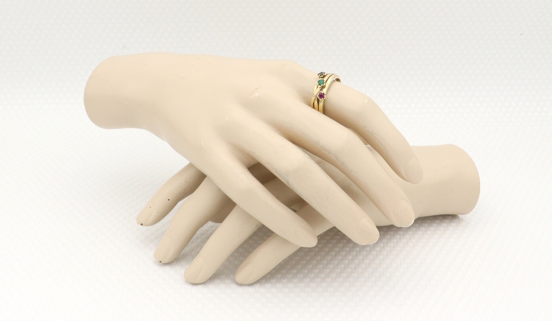 Vintage ring met robijn,smaragd en saffier. Maat: 21.1. Nr: 2021/444.