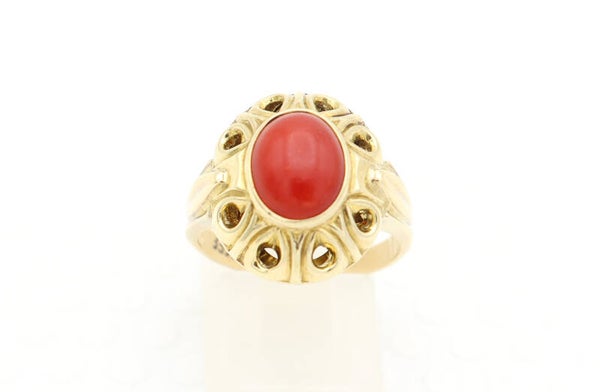 Antiek ring met bloedkoraal. Maat: 17.5. 2021/514.