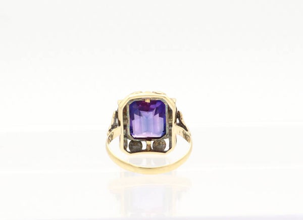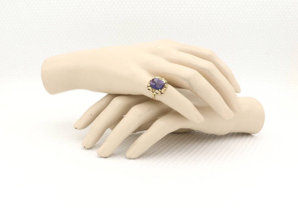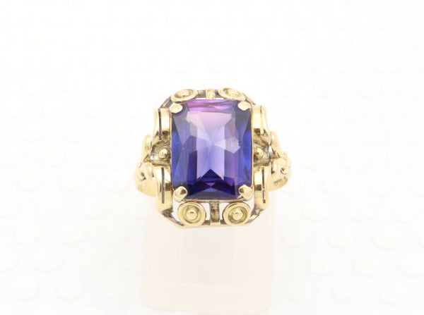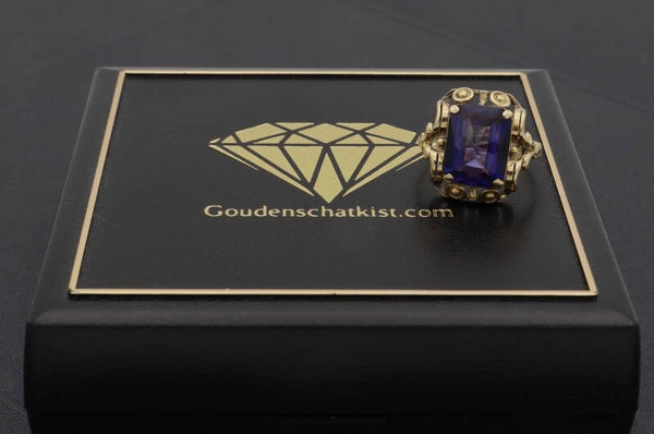 Gouden antieke Art Deco ring met blauwe paarse saffier. Maat: 16. 2021/565.