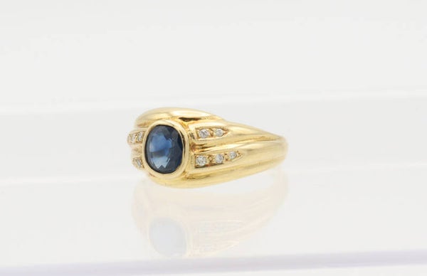 Gouden vintage ring met saffier en diamant. Maat: 17.3. 2021/576.