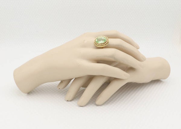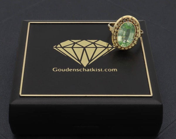 Gouden antieke Art Deco ring met groene amethist. Maat: 20.7. 2021/577.