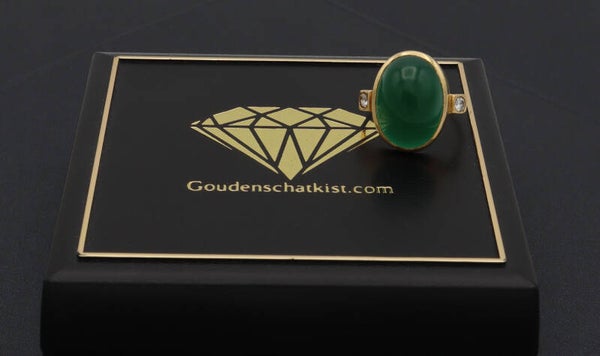Gouden vintage ring met chysopraas en witte saffier. Maat: 17.9. 2021/581.